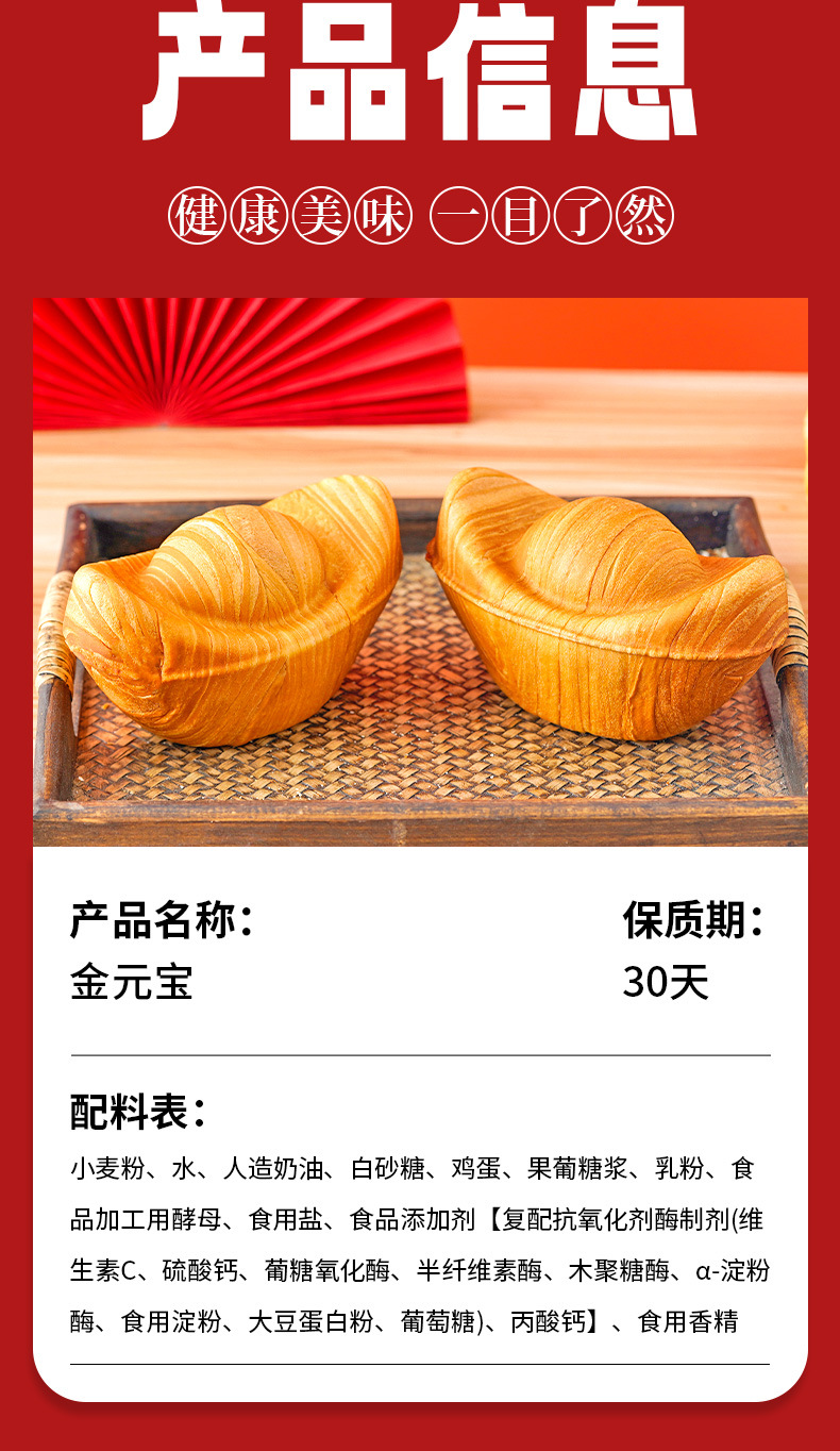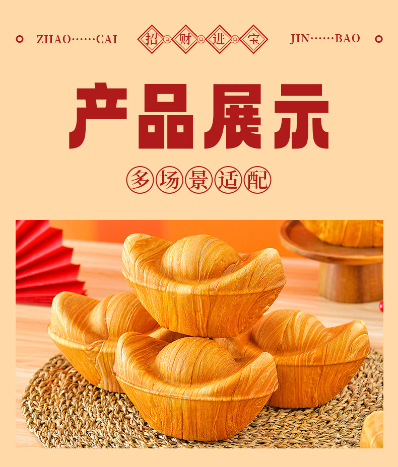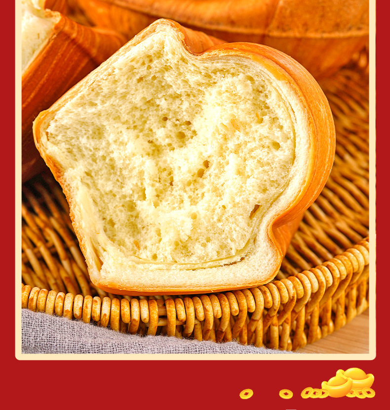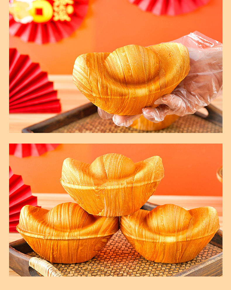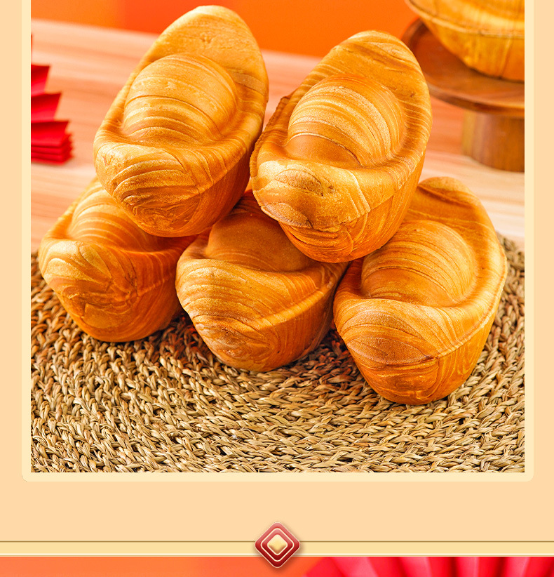 【“财”从口入!金元宝面包约200g/盒】精选小麦粉,鸡蛋,乳粉,0反式脂肪酸,吃得放心!手撕过年货喜庆零食品早代餐走亲戚