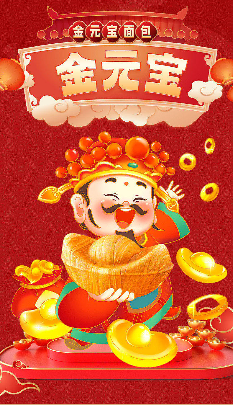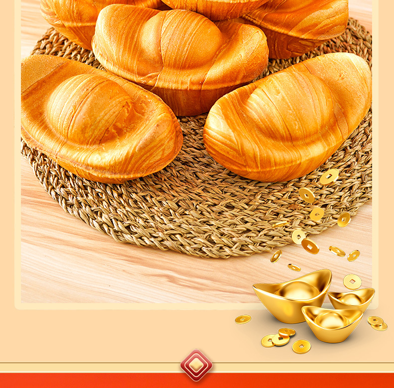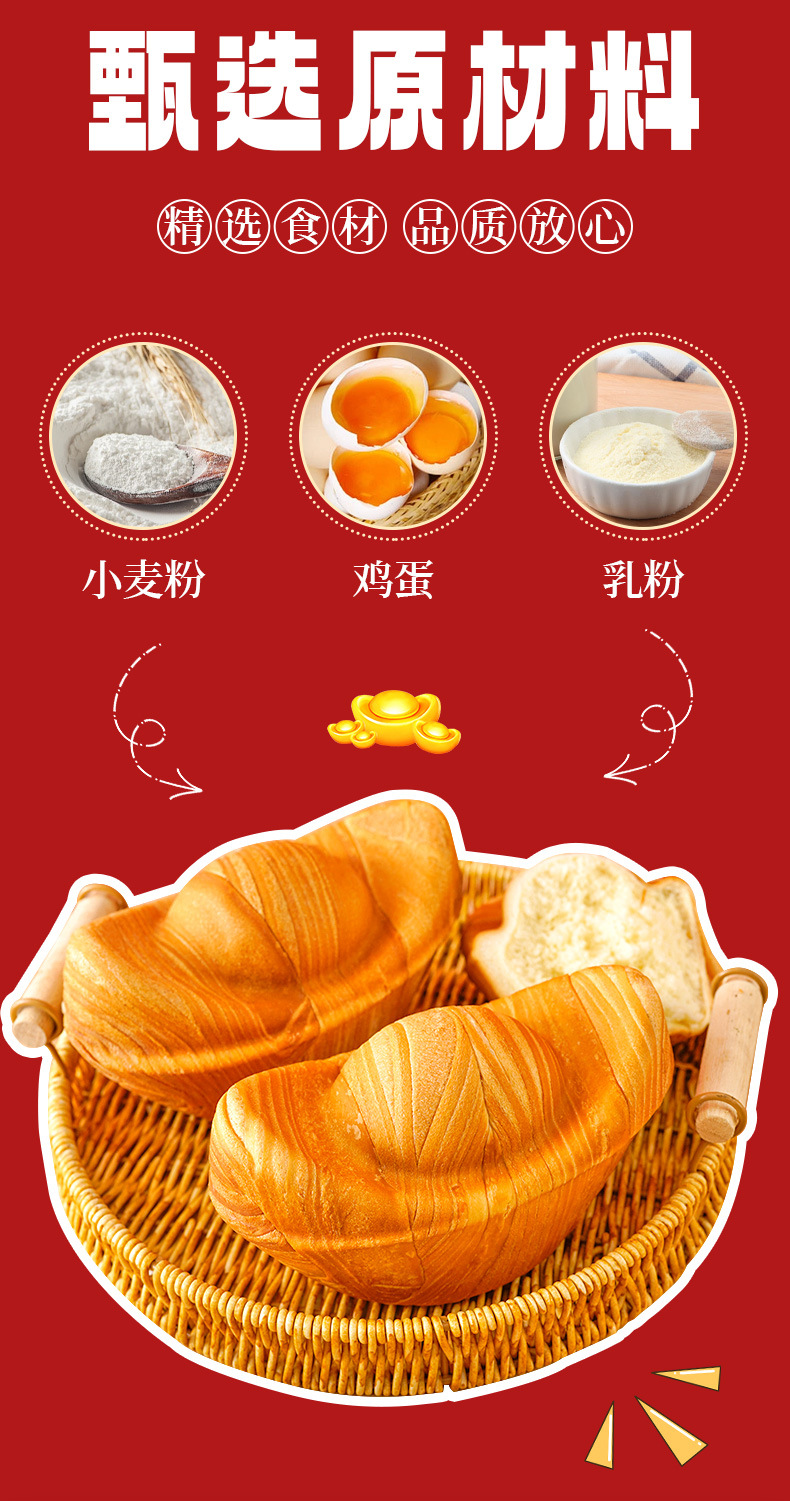 【“财”从口入!金元宝面包约200g/盒】精选小麦粉,鸡蛋,乳粉,0反式脂肪酸,吃得放心!手撕过年货喜庆零食品早代餐走亲戚