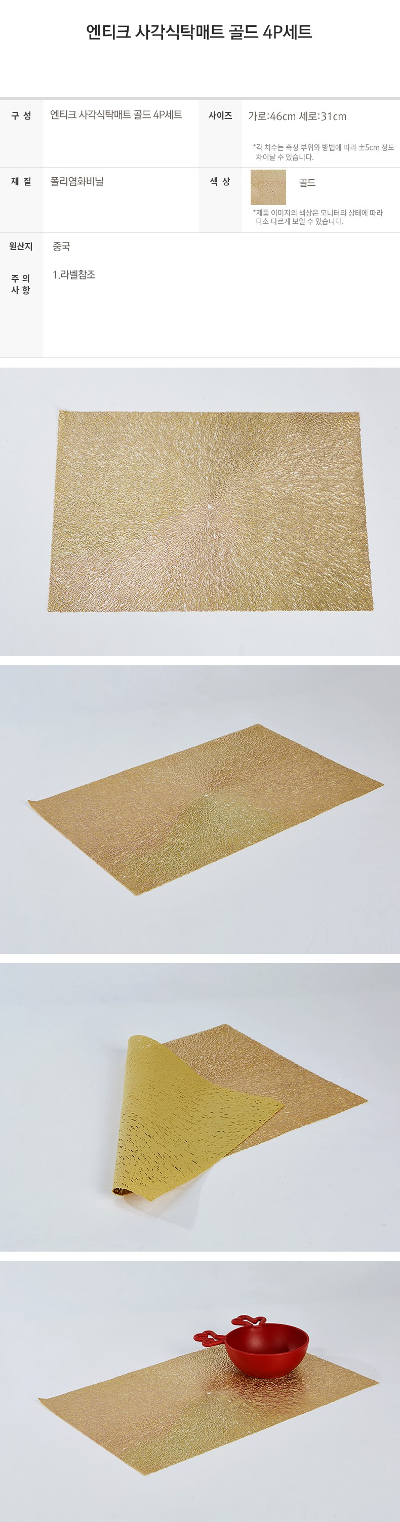 [现代住宅] 新款 复古方形桌垫 餐桌垫 金色 4P 套装JPY带授权招加盟代理