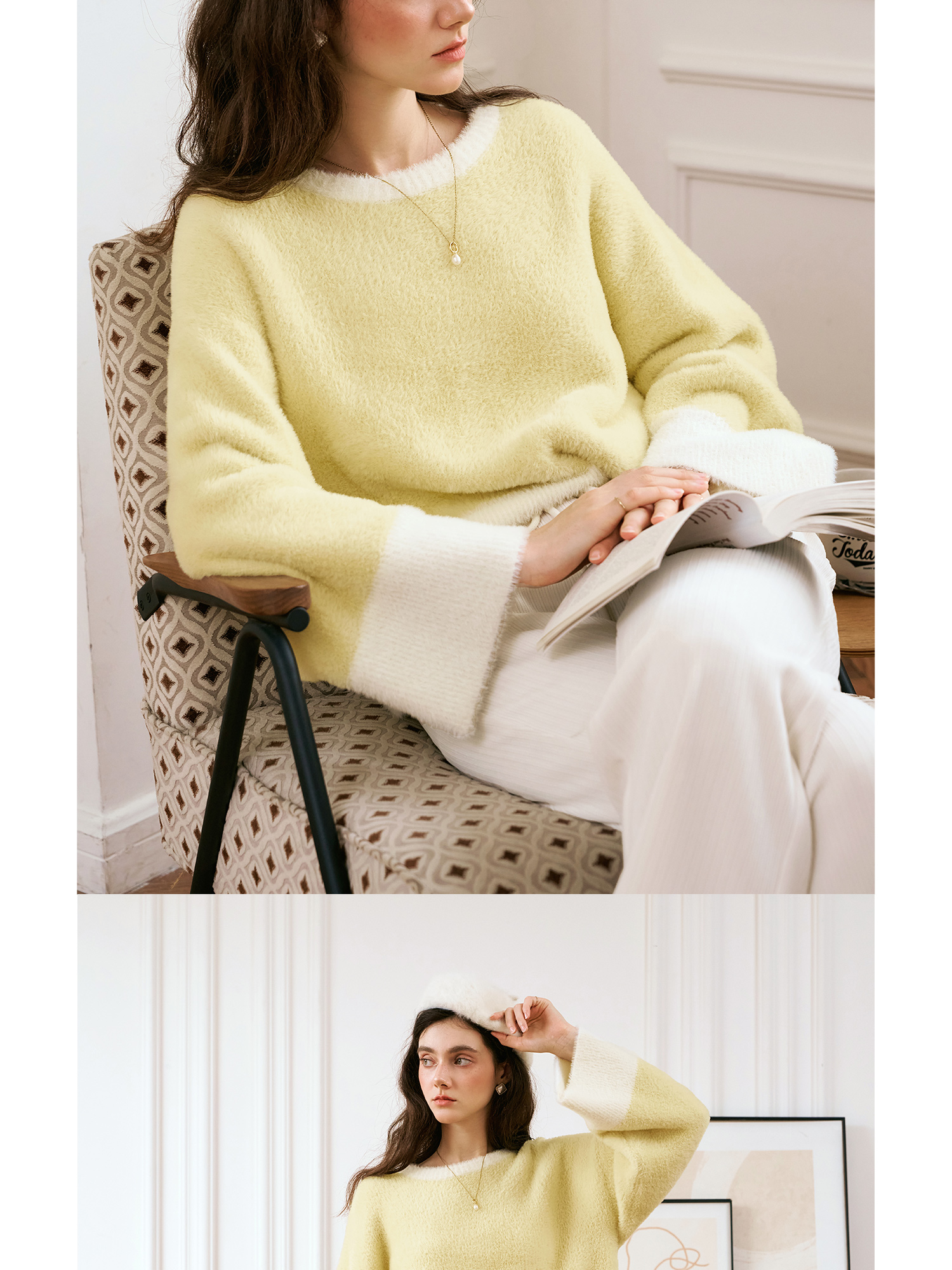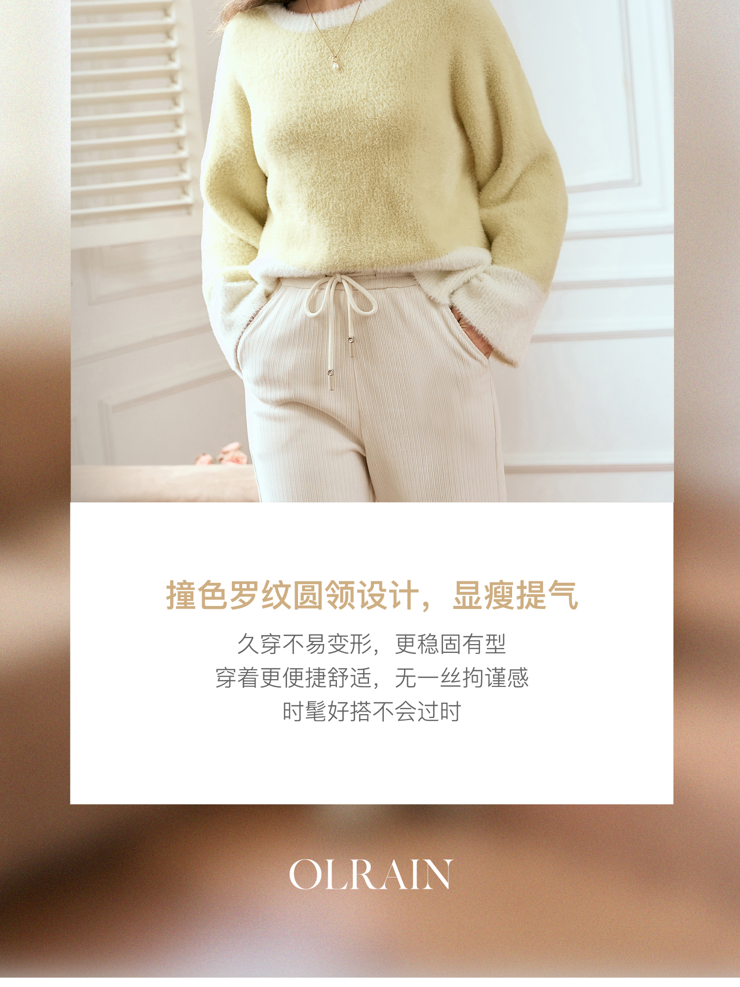 OLrain欧芮儿法式圆领针织衫女秋季2024年新款宽松慵懒套头衫