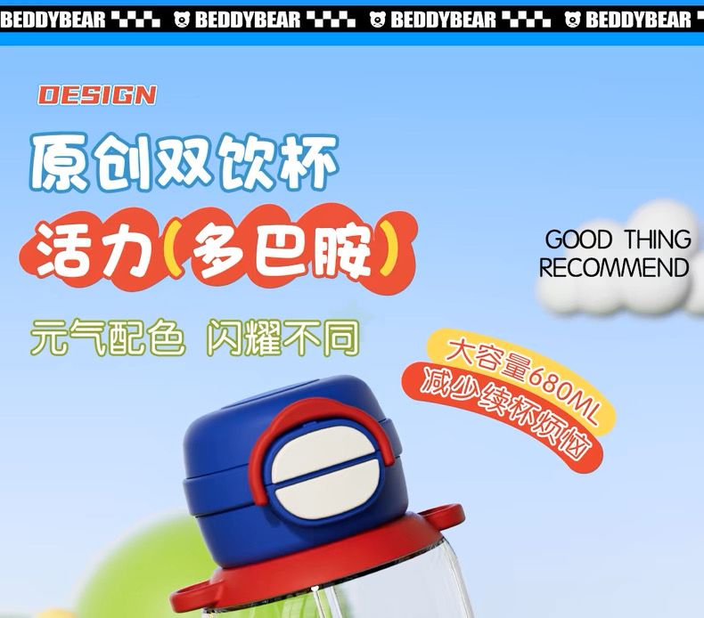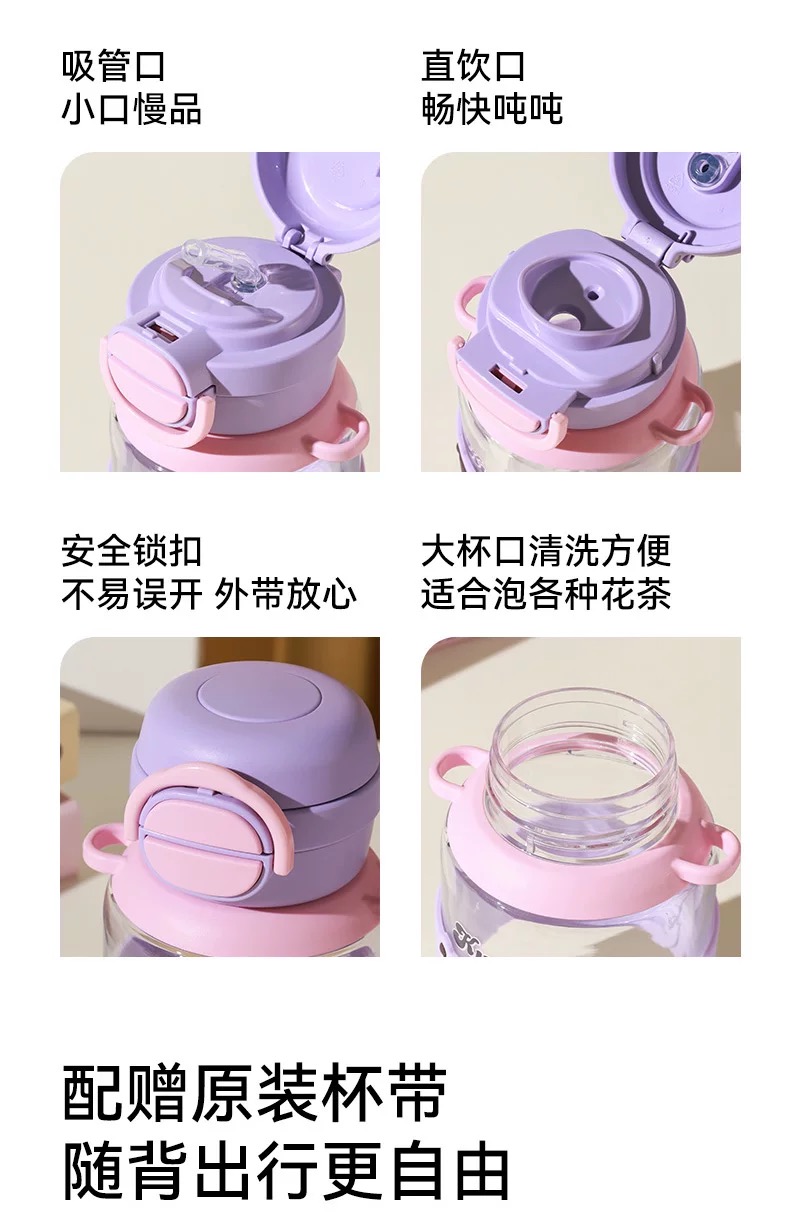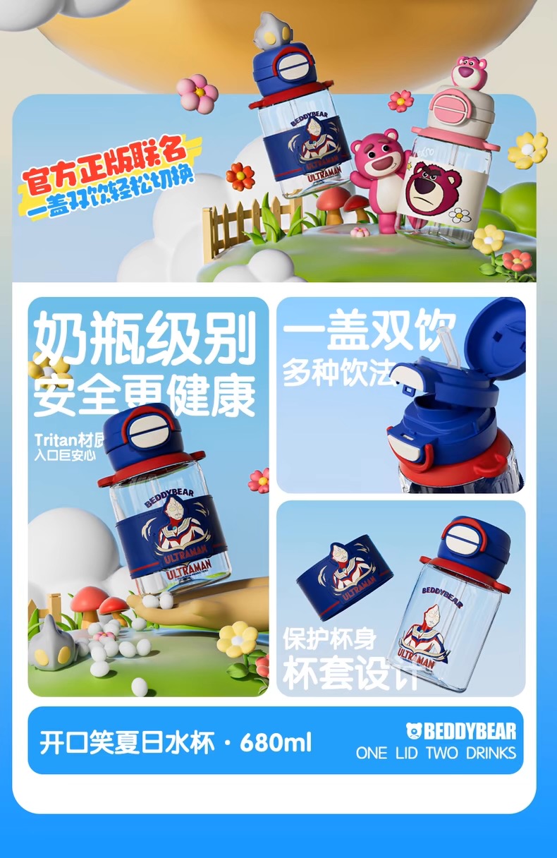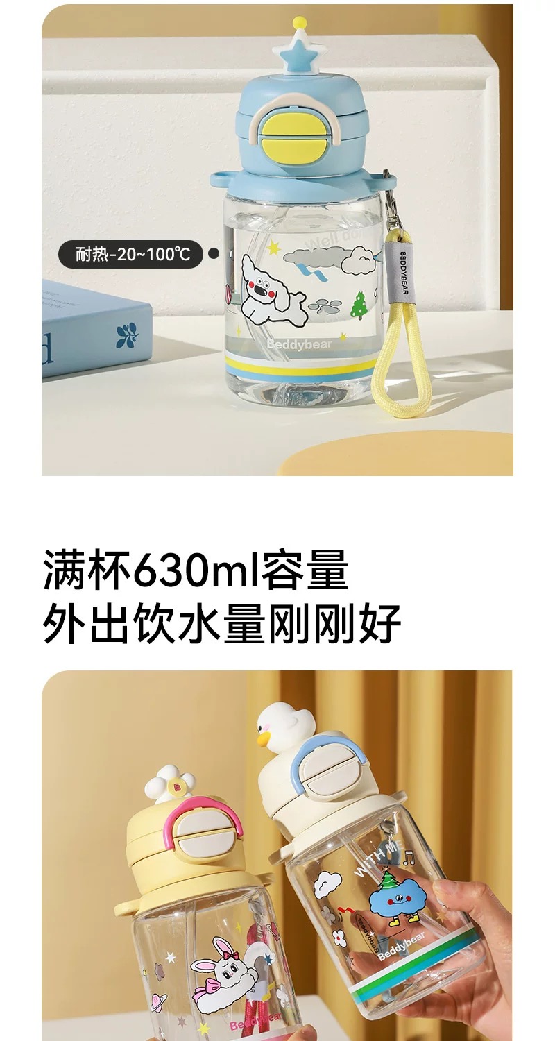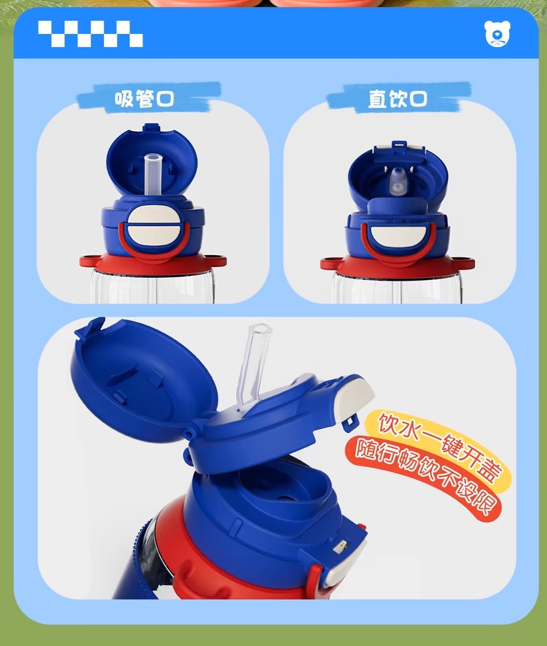 【品牌直发】【杯具熊轻夏系列开口笑塑料杯】双饮塑料杯680ml 直饮+吸管杯 便携简约可爱 成人 学生