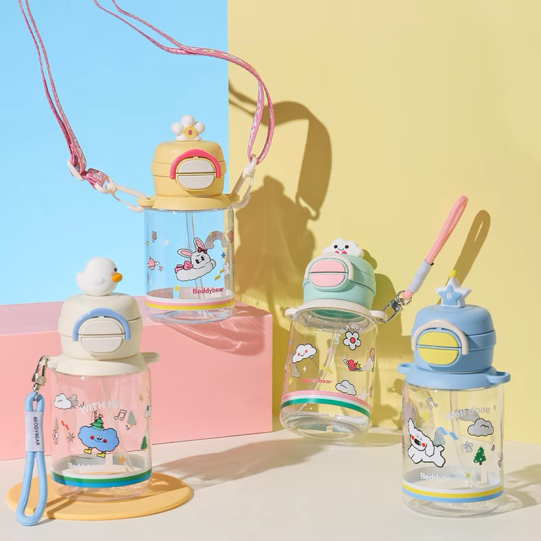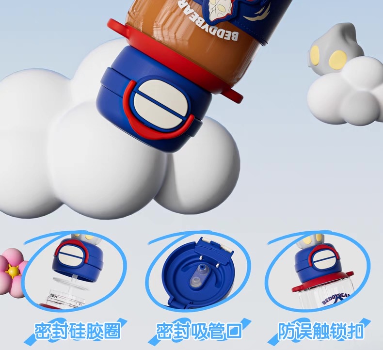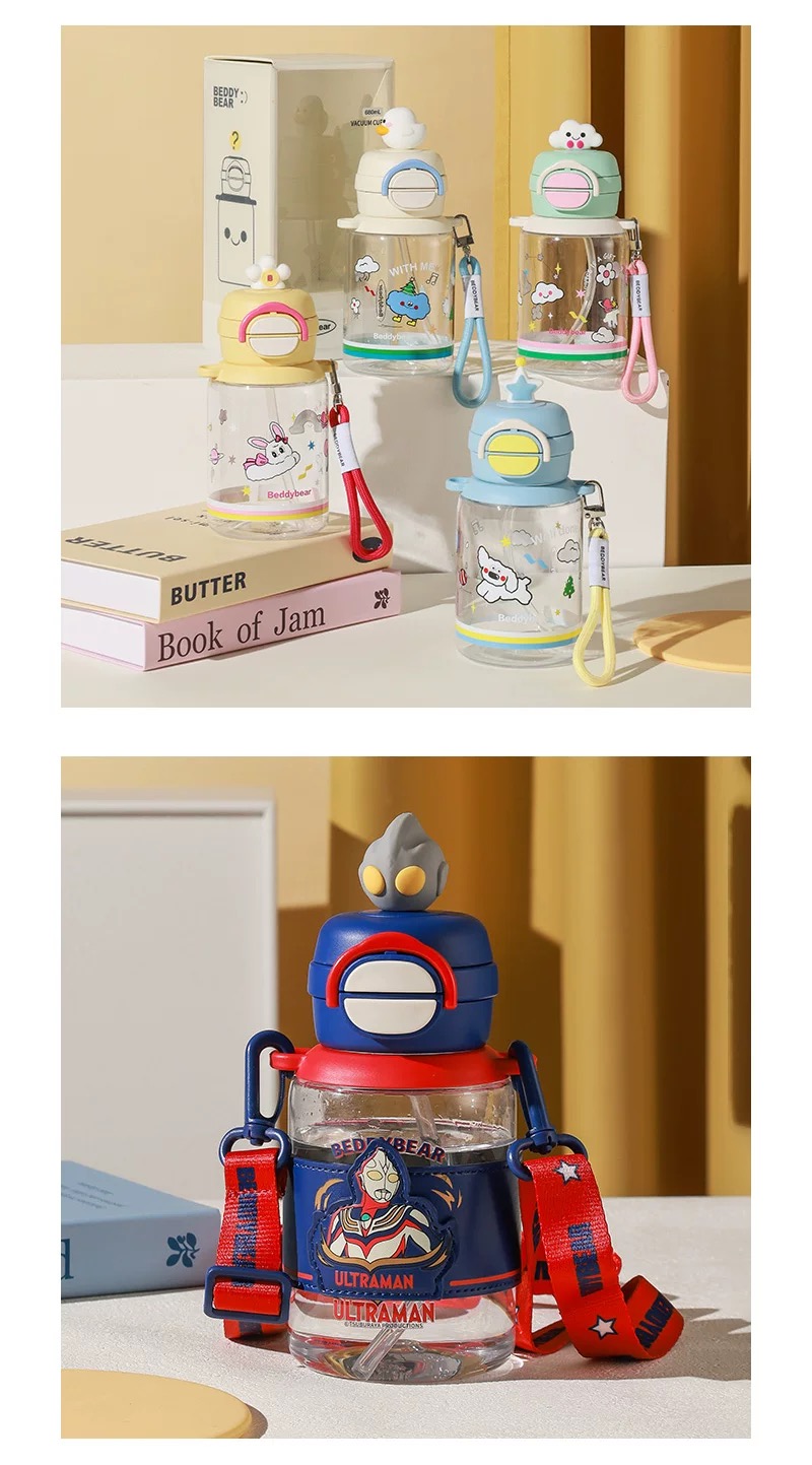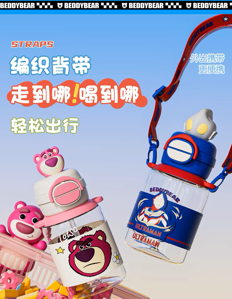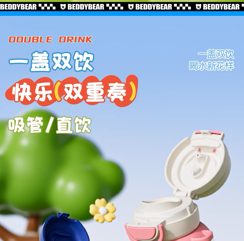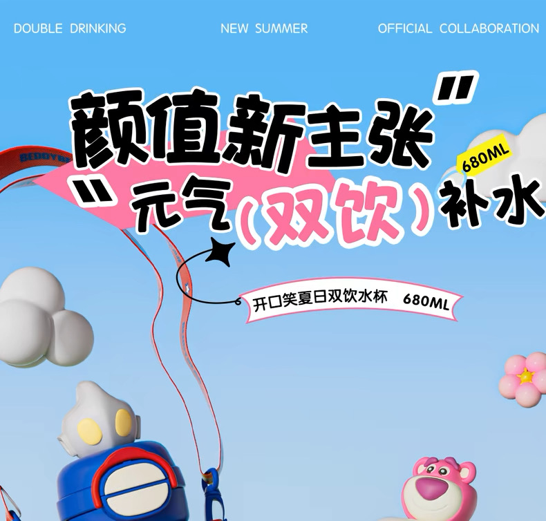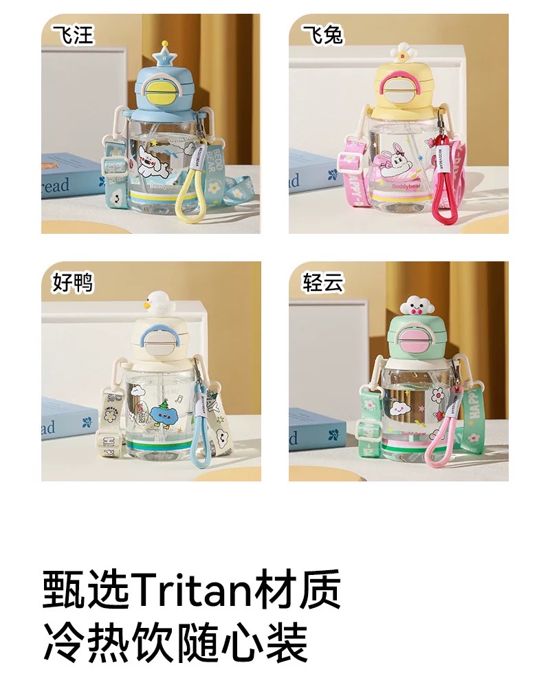 【品牌直发】【杯具熊轻夏系列开口笑塑料杯】双饮塑料杯680ml 直饮+吸管杯 便携简约可爱 成人 学生