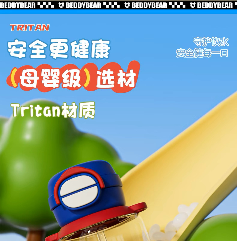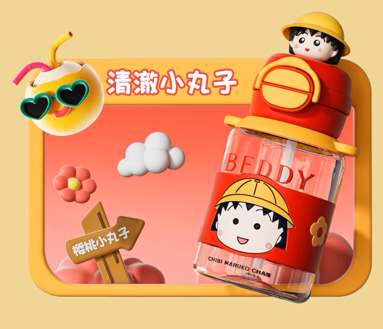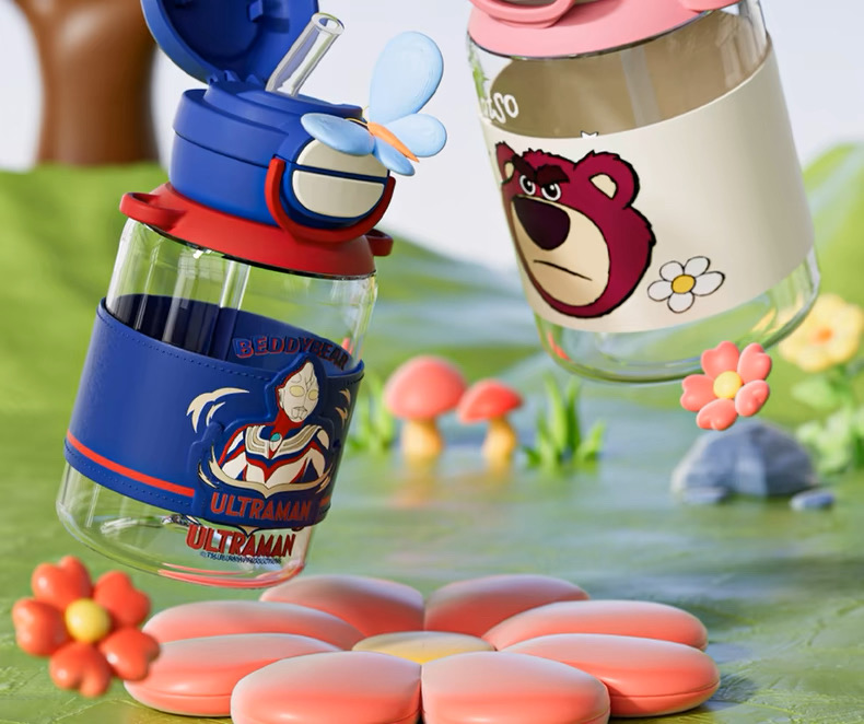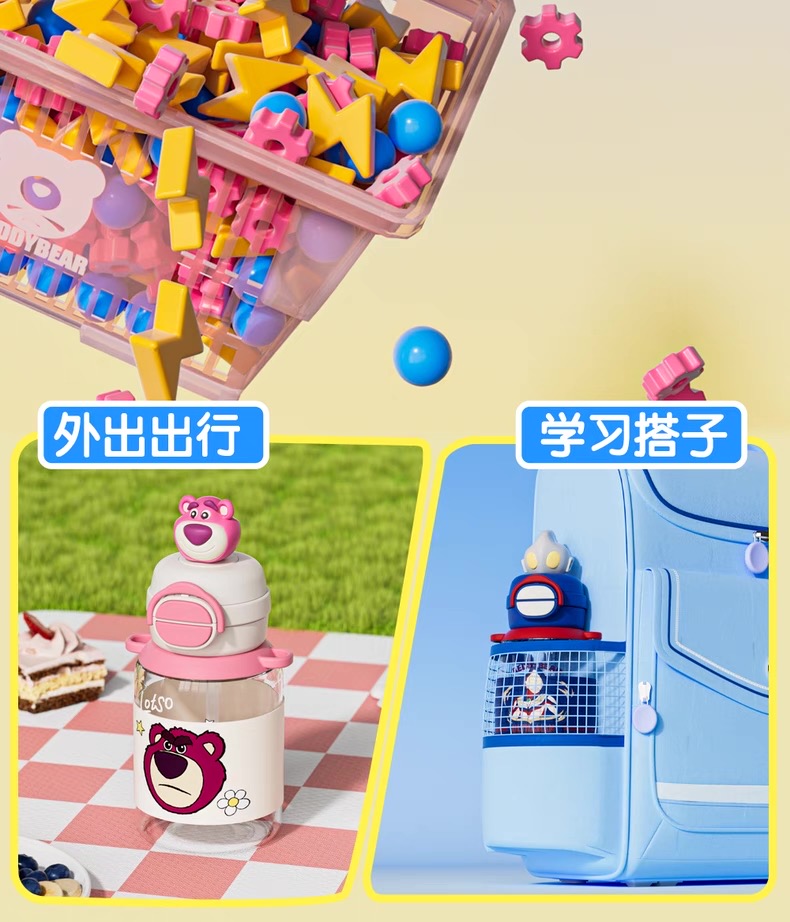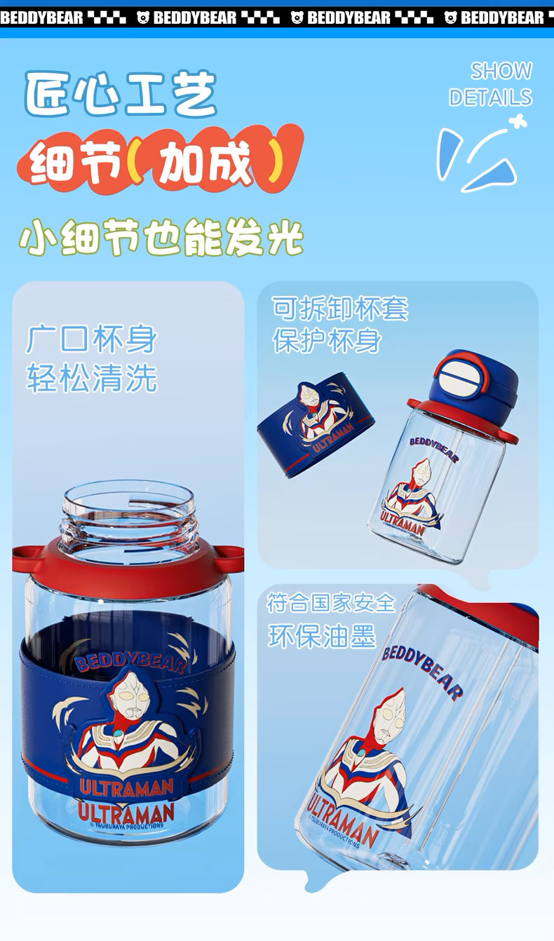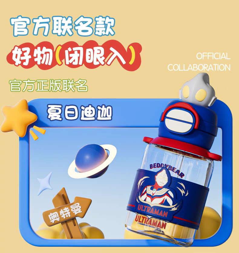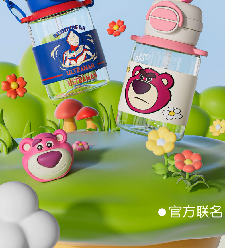 【品牌直发】【杯具熊轻夏系列开口笑塑料杯】双饮塑料杯680ml 直饮+吸管杯 便携简约可爱 成人 学生