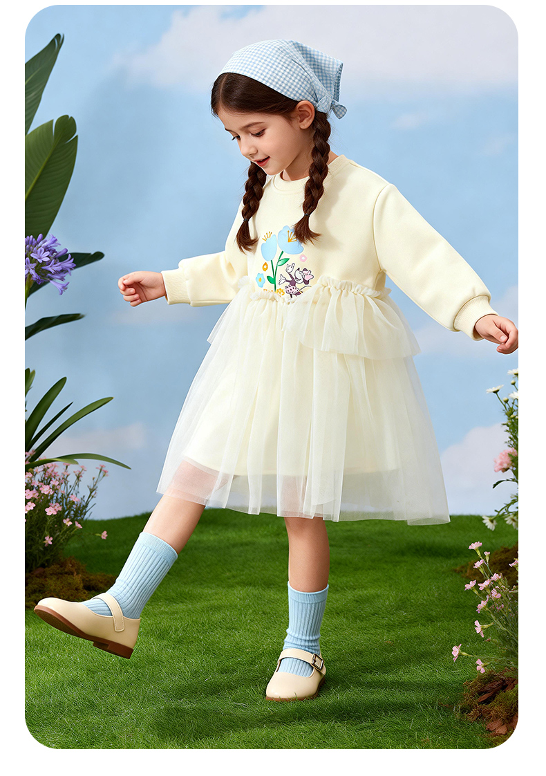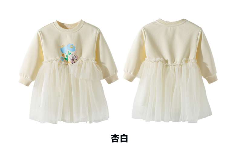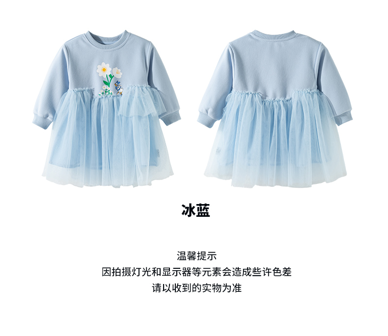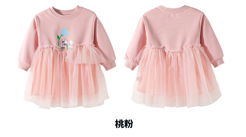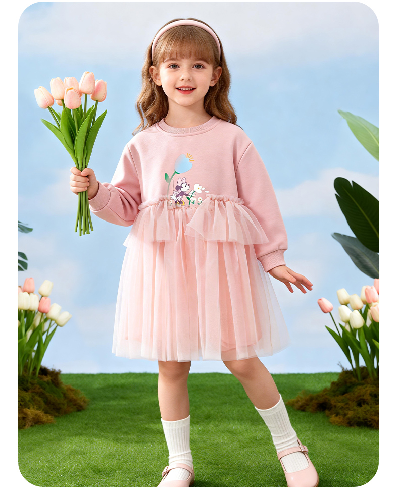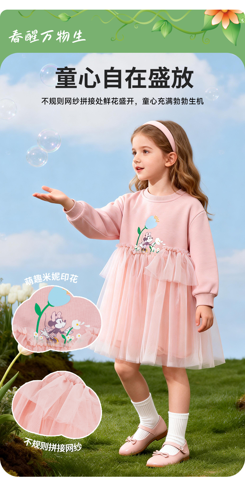 迪士尼(Disney)女童长袖连衣裙甜美休闲外穿拼接卫衣网纱连衣裙2026春季新款裙装ZD1FQ003