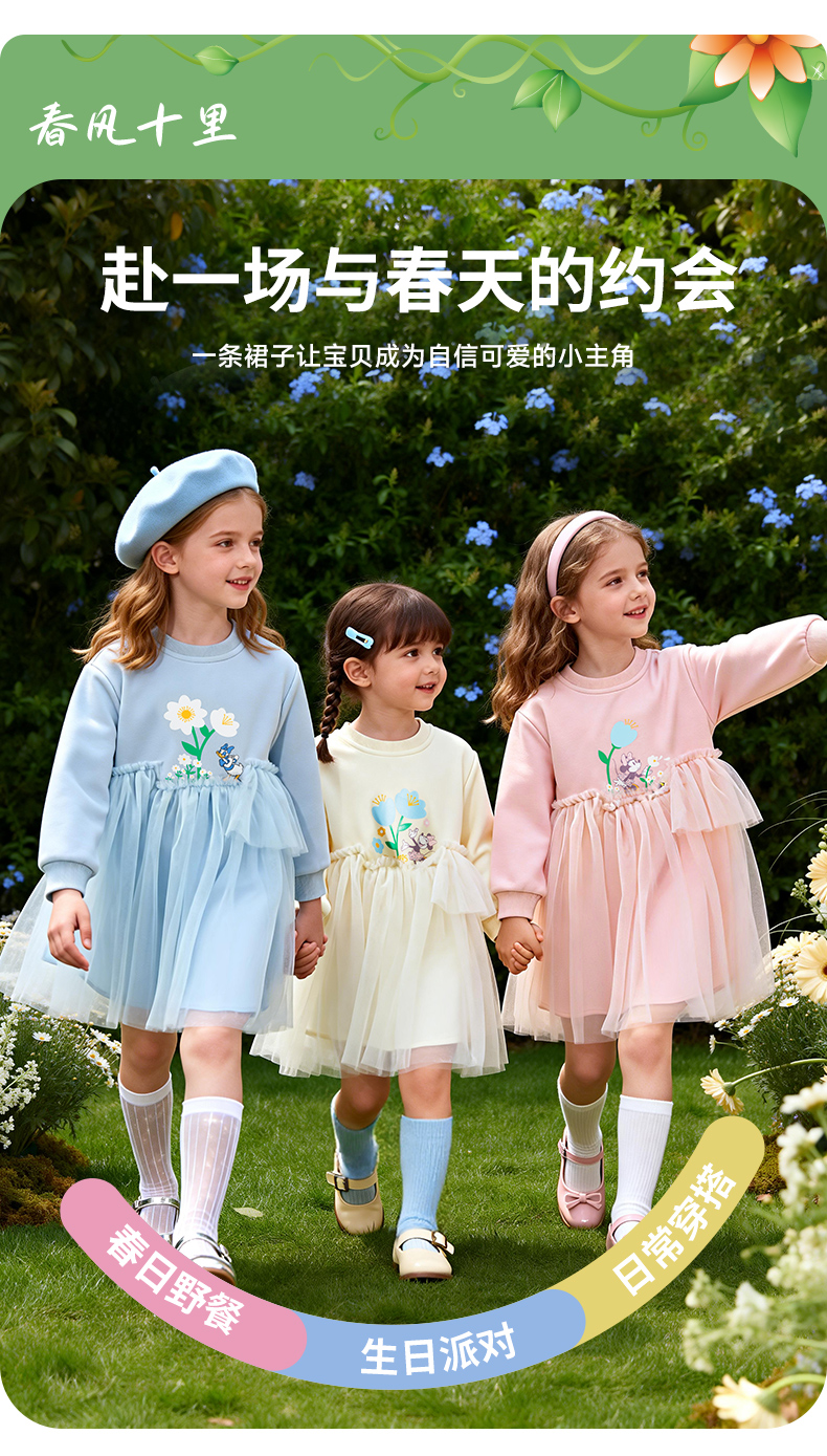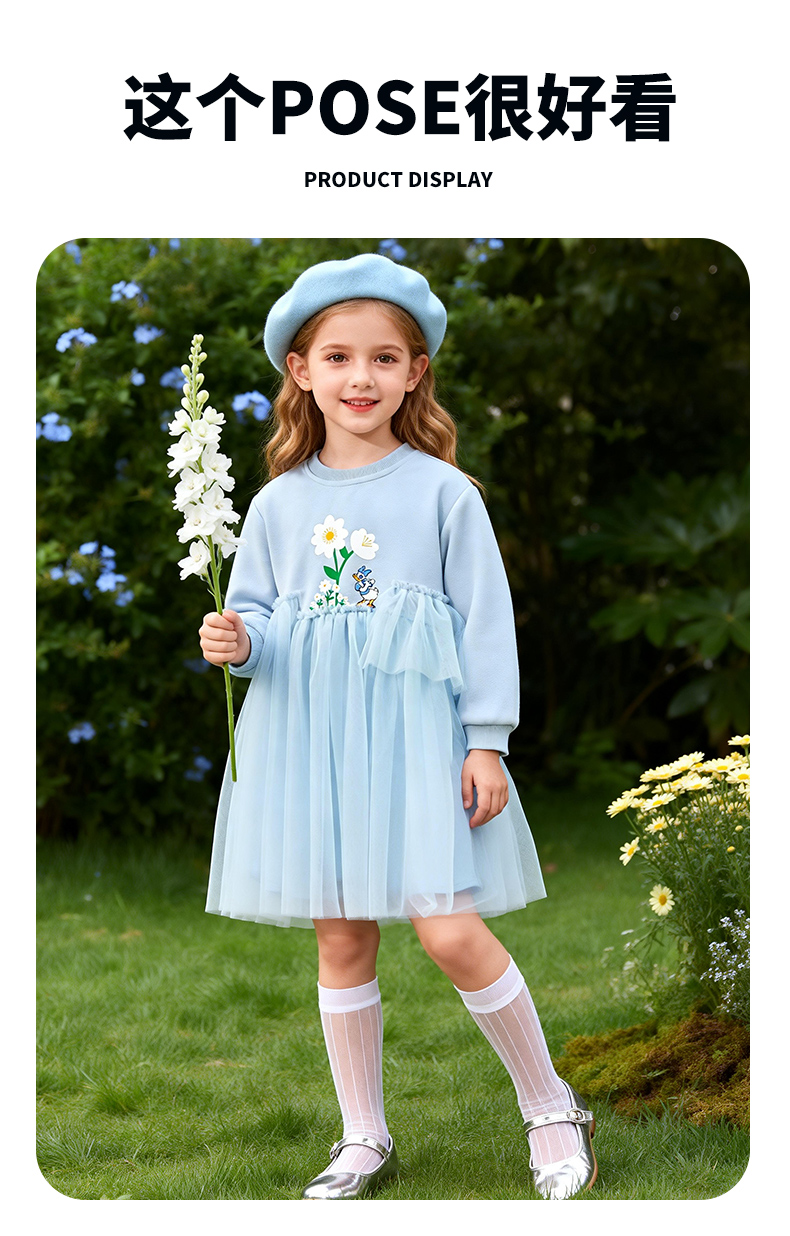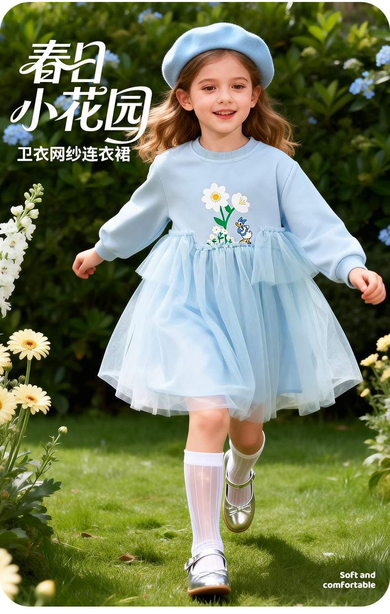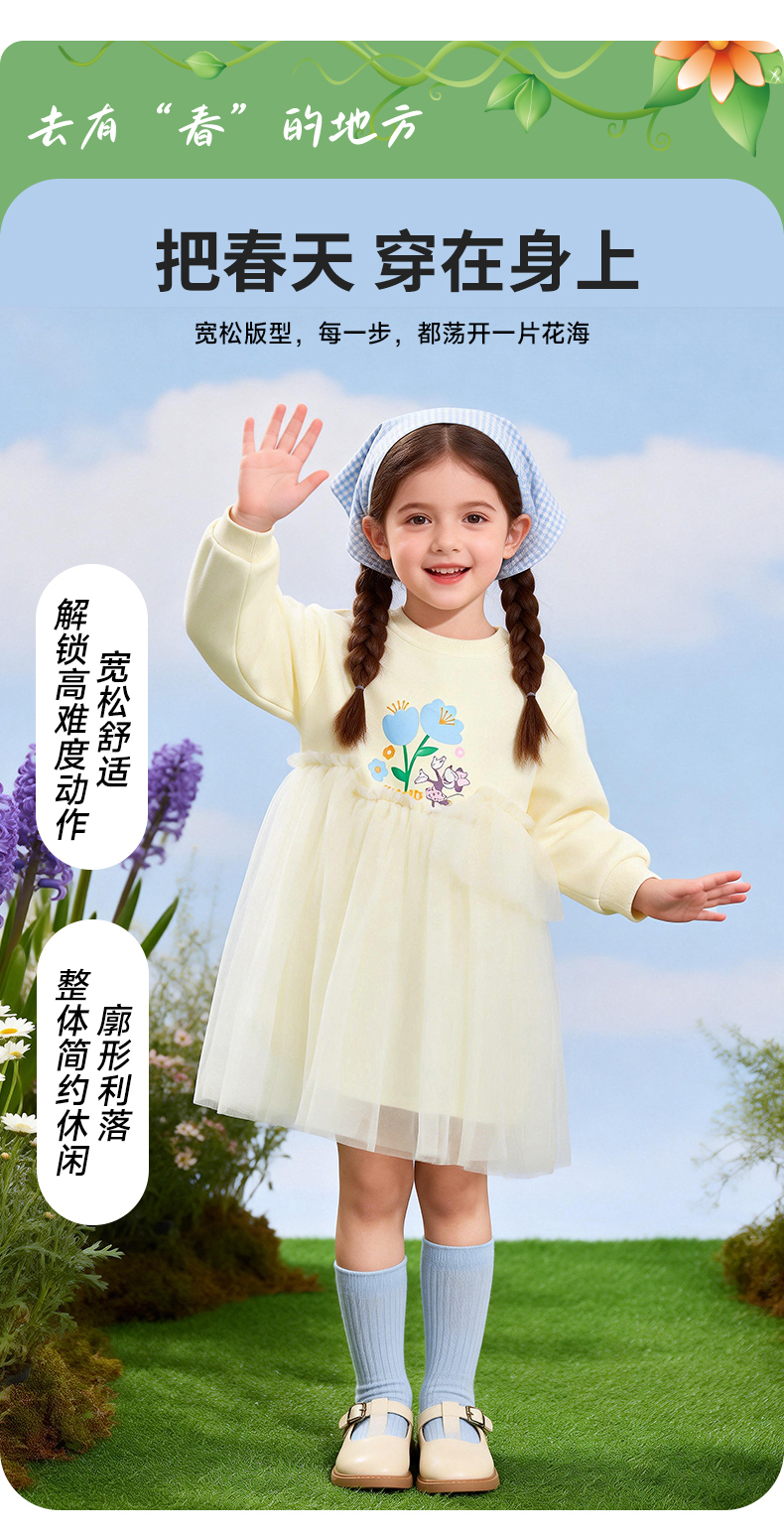 迪士尼(Disney)女童长袖连衣裙甜美休闲外穿拼接卫衣网纱连衣裙2026春季新款裙装ZD1FQ003