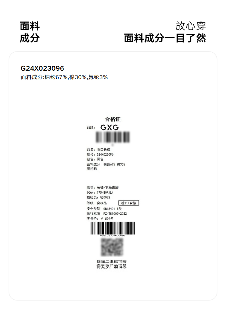 GXG男装 黑色束脚休闲裤宽松长裤男士 24年秋G24X023096