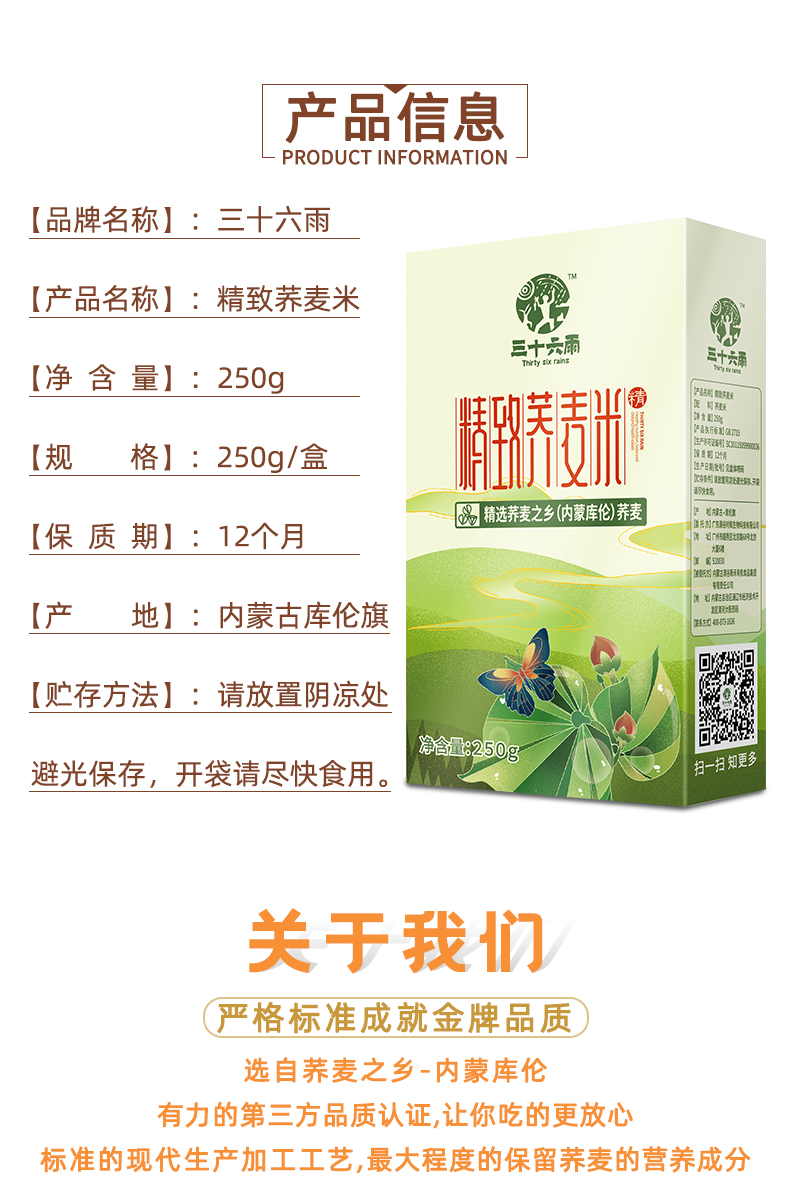 内蒙库伦 三十六雨精致荞麦米 250g/盒*3/精致荞麦米500g/盒*2