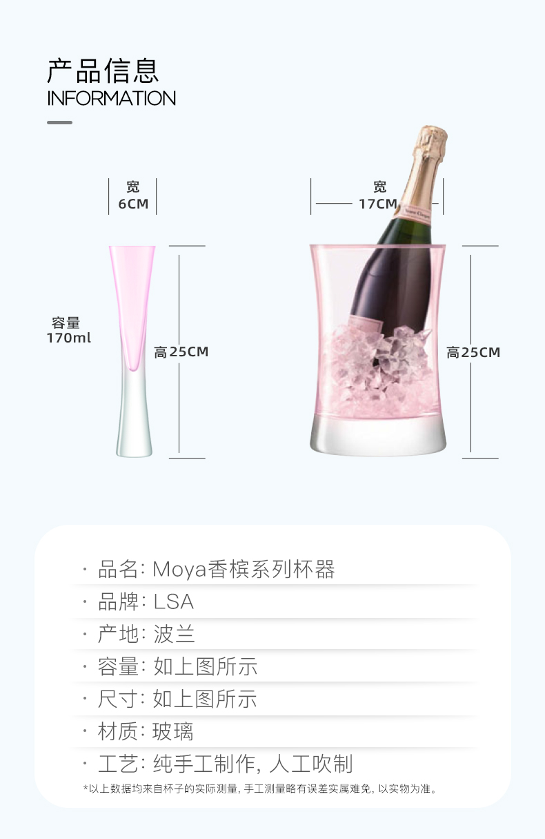 LSA Moya创意手工玻璃香槟杯套装 家用香槟气泡杯