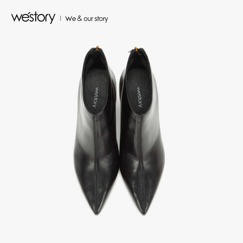 westory2018年尖头皮面短靴高跟粗跟靴子女新款冬靴W284S80921