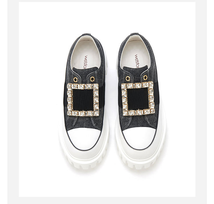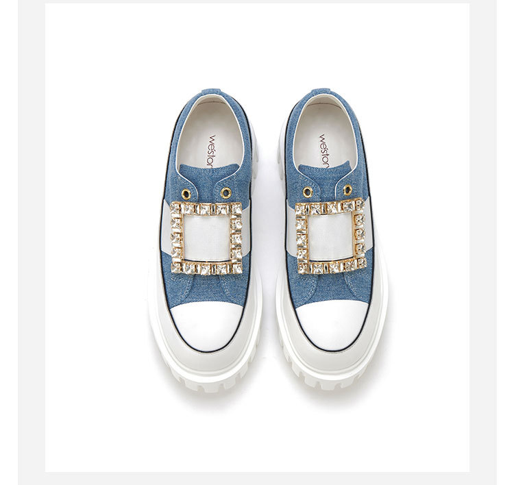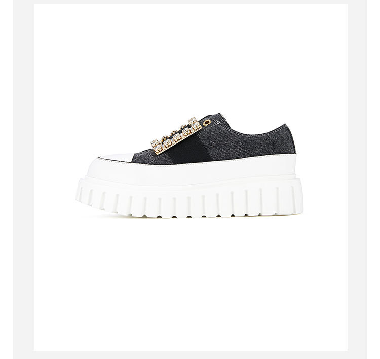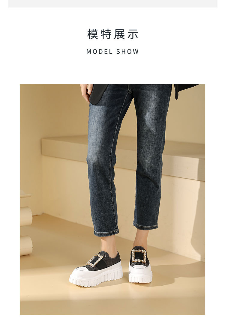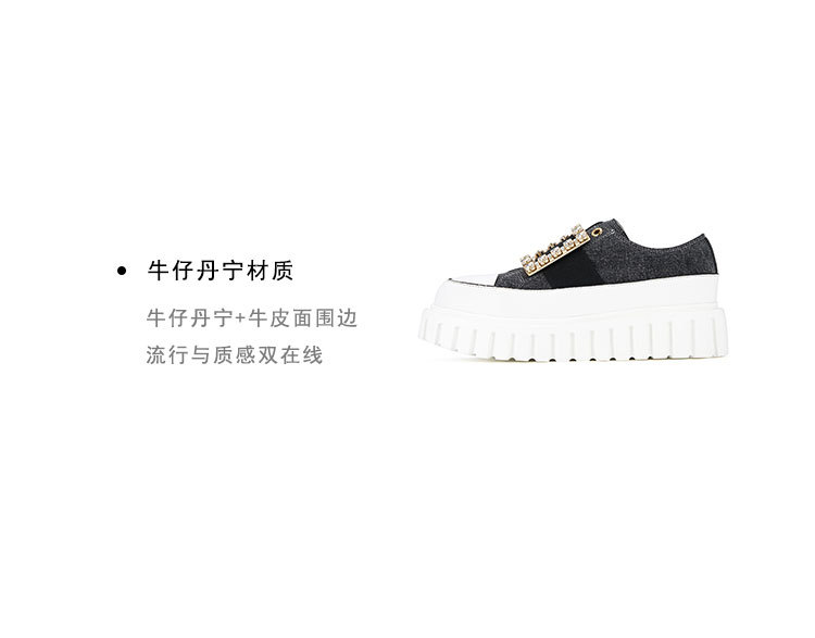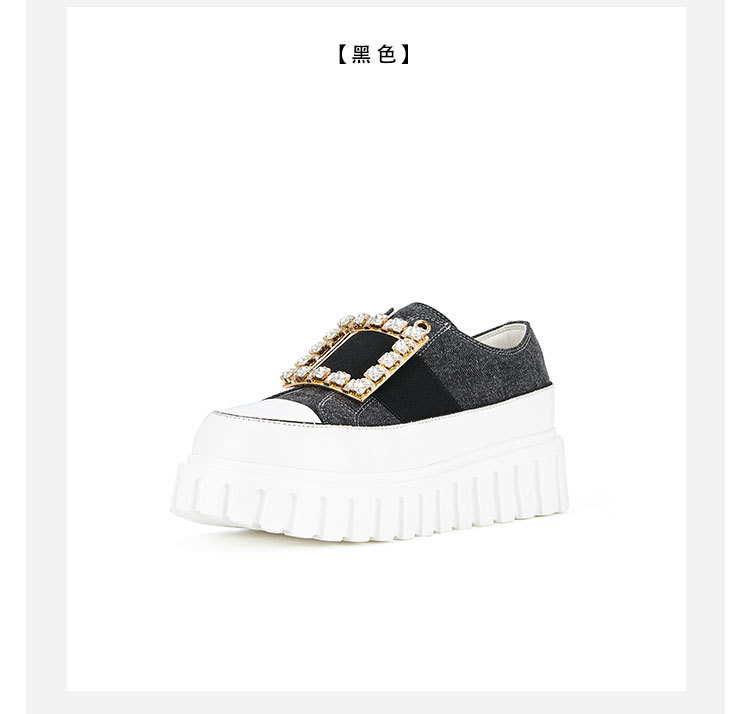 westory2023秋季新款时尚圆头钻饰方扣厚底超轻小白鞋板鞋女S23CM74141
