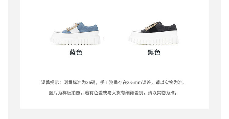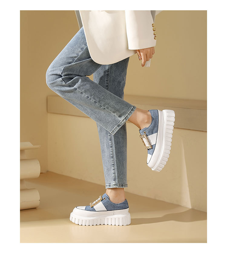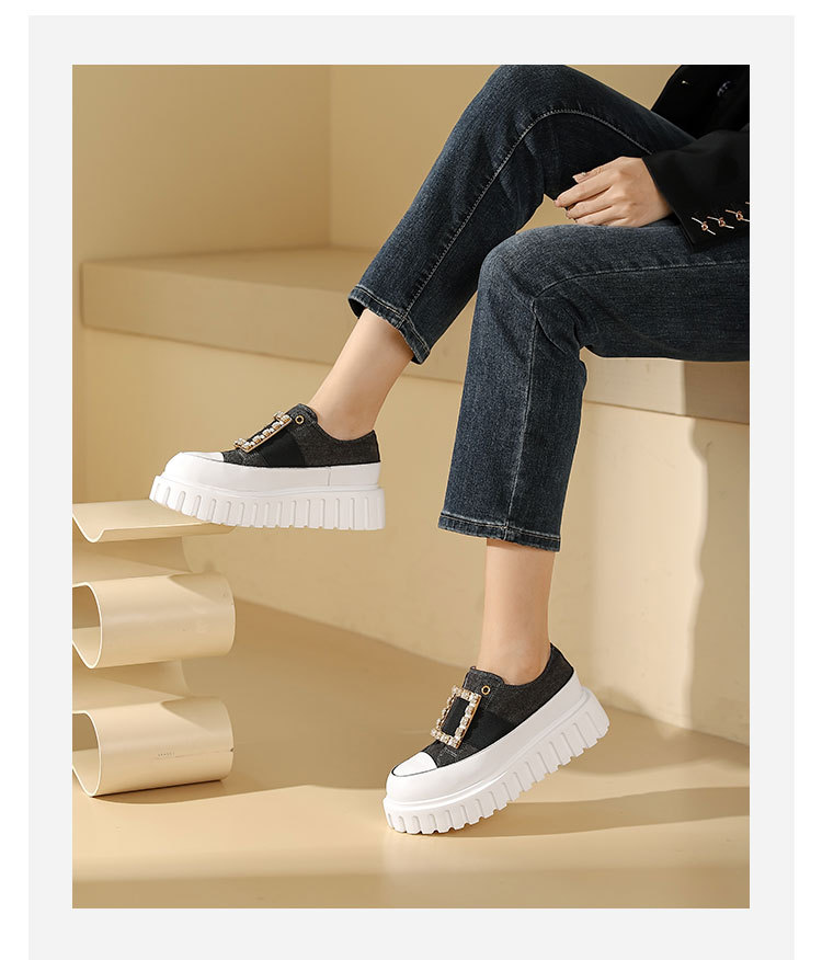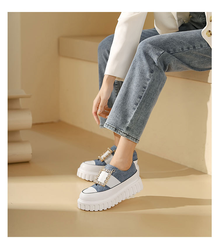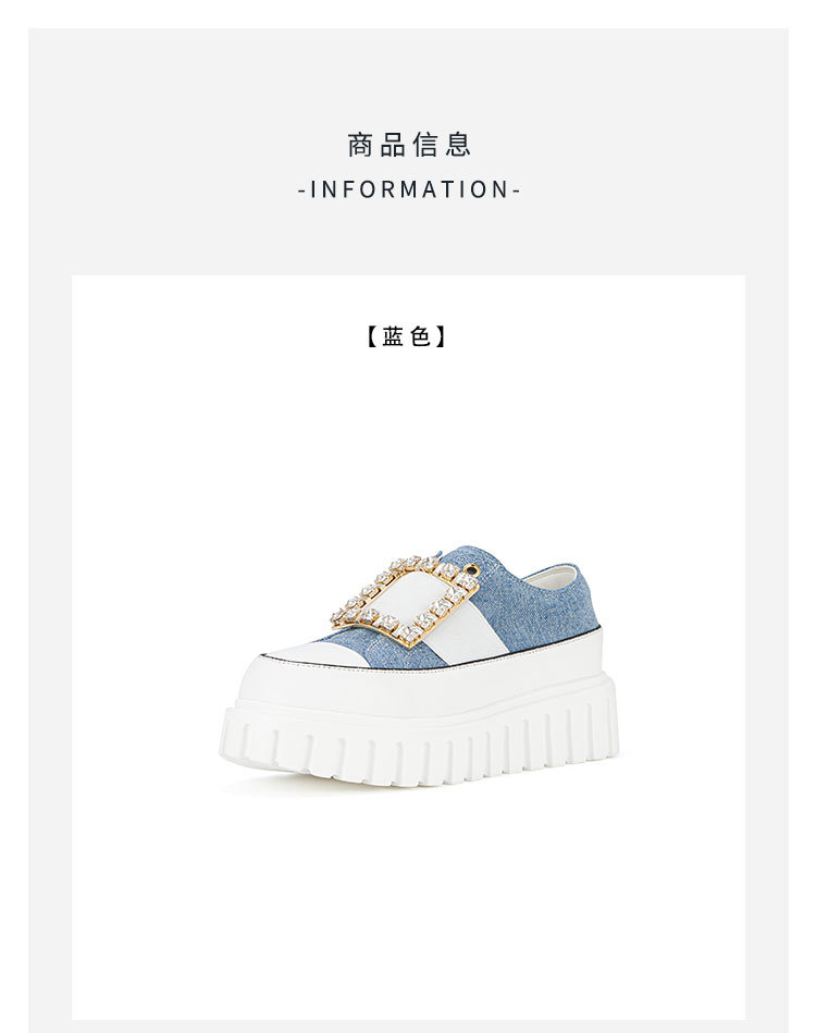 westory2023秋季新款时尚圆头钻饰方扣厚底超轻小白鞋板鞋女S23CM74141