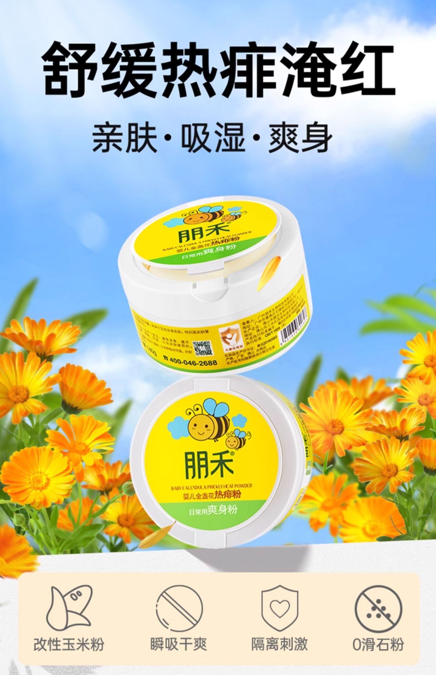 朋禾 婴儿 金盏花 热痱粉