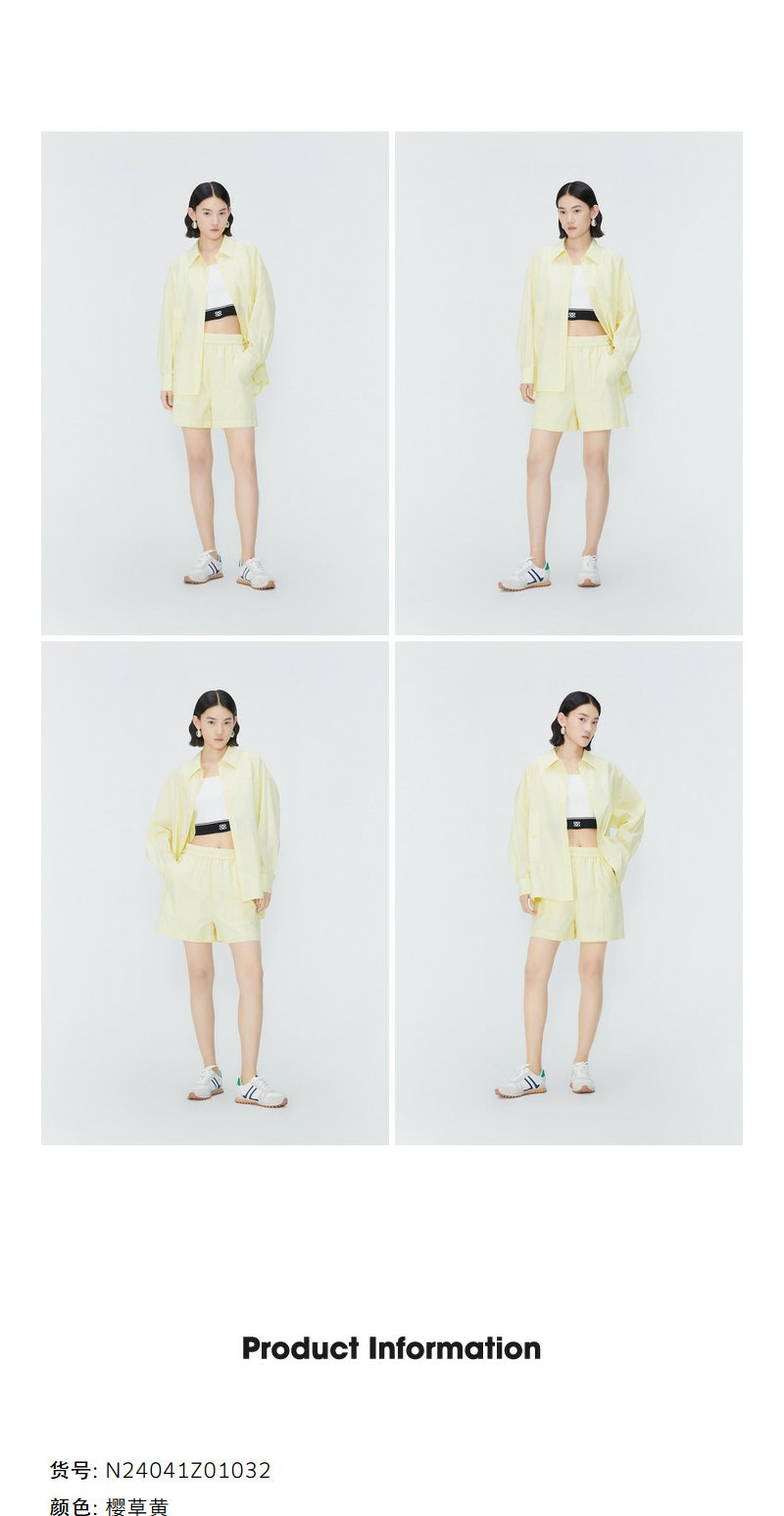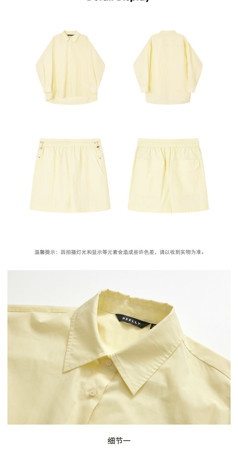 NEELLY纳俪商场同款短裤衬衫套装女夏季薄荷曼波多巴胺穿搭两件套N24041Z01032