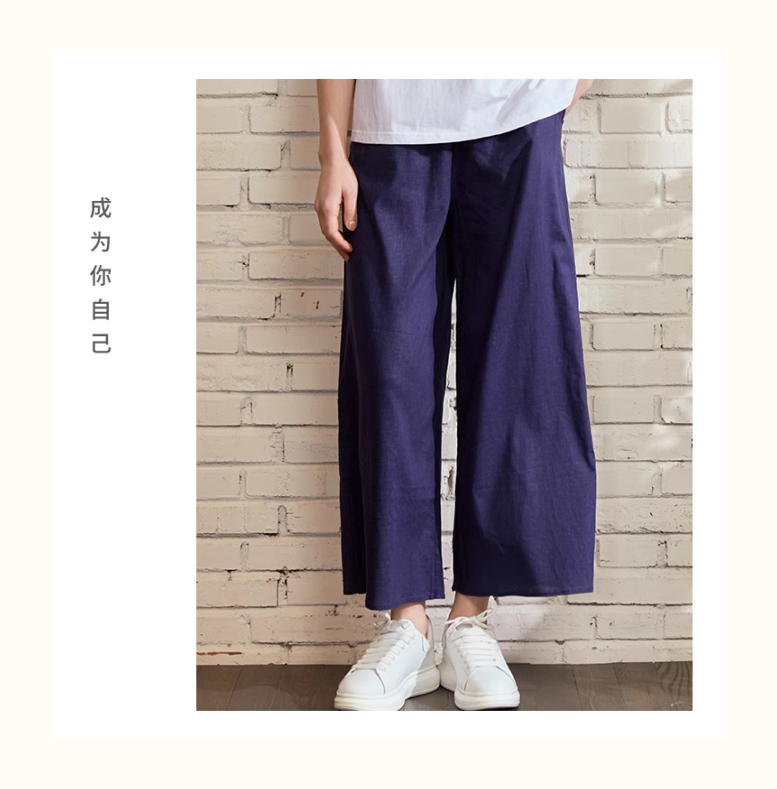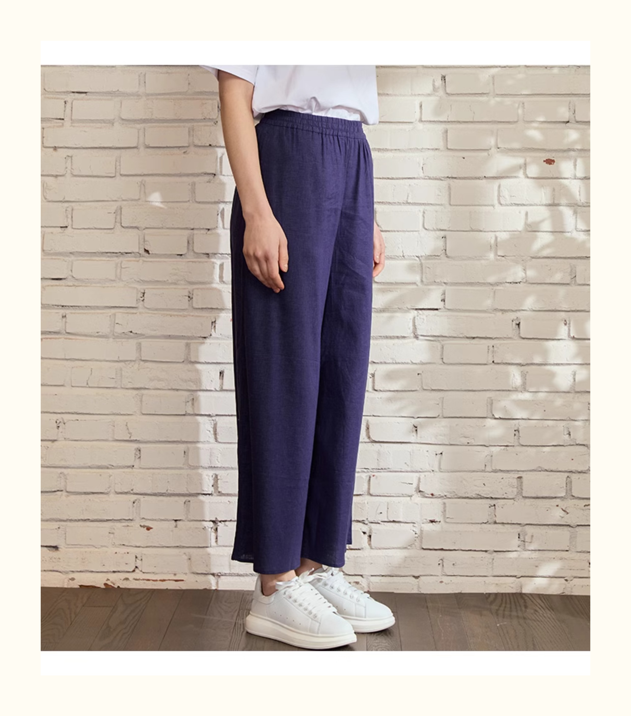 VIVIAN LIU薇薇安刘D2445008初秋女装新款时尚松紧腰苎麻休闲长裤
