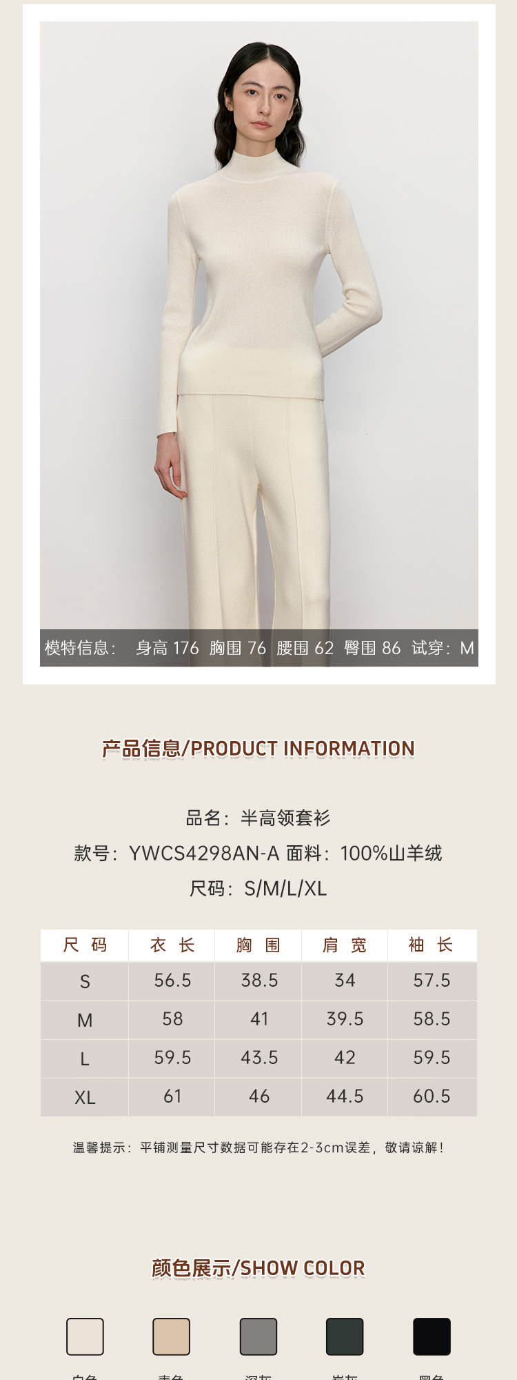东黎 • 山羊绒女士秋冬百搭时尚半高领套衫 4298