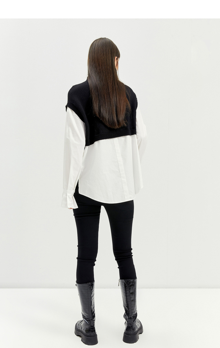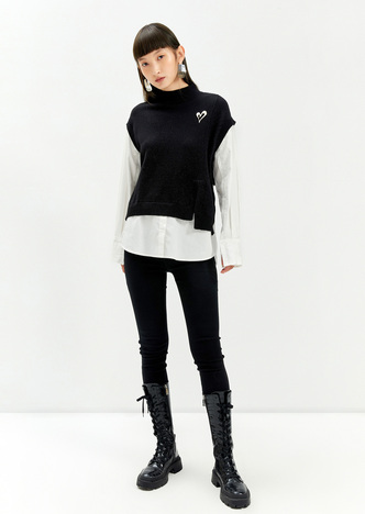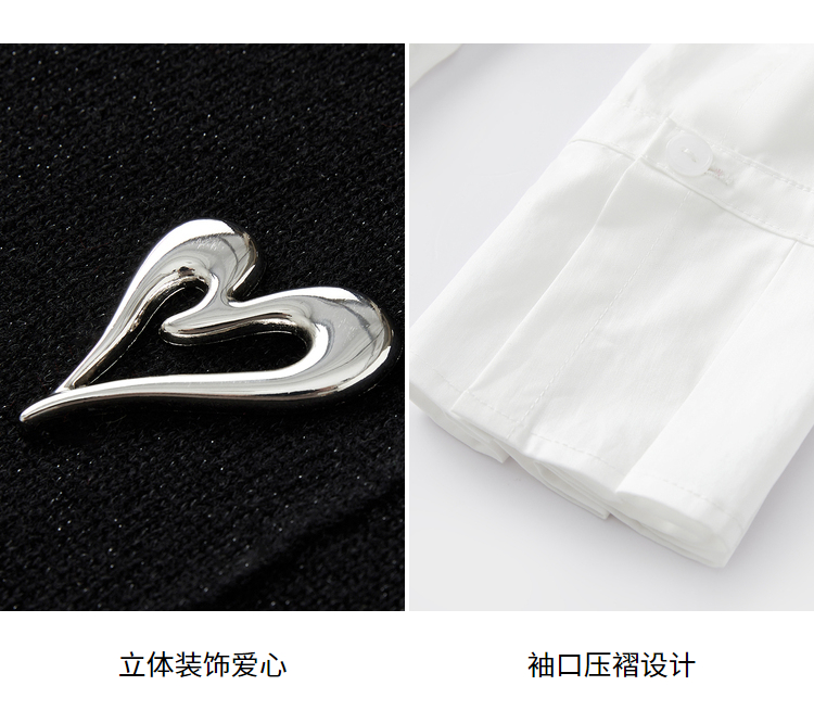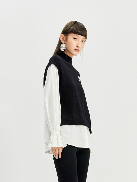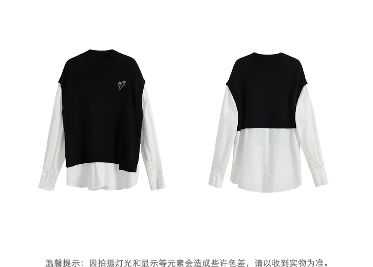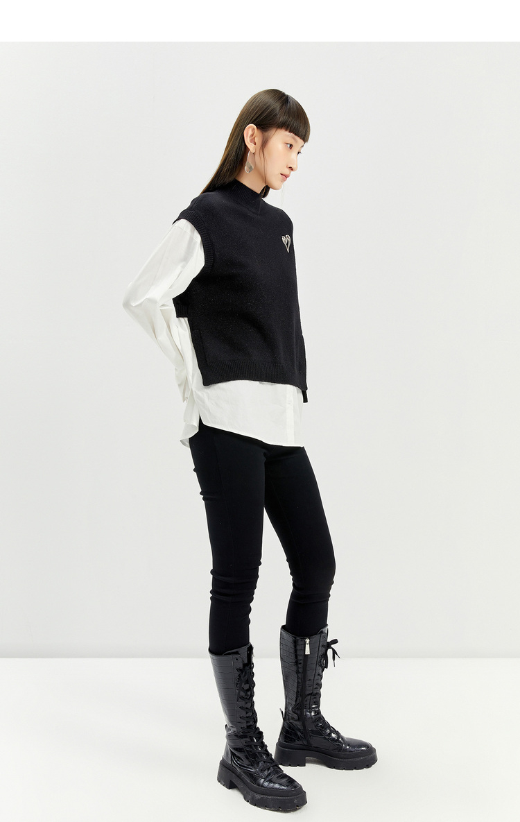NEELLY纳俪半高领假两件拼接针织衫女冬季立体装饰爱心套头上衣N21101A01002