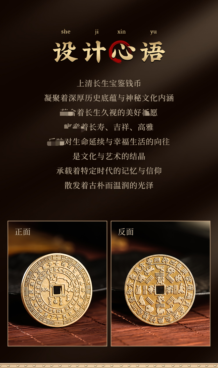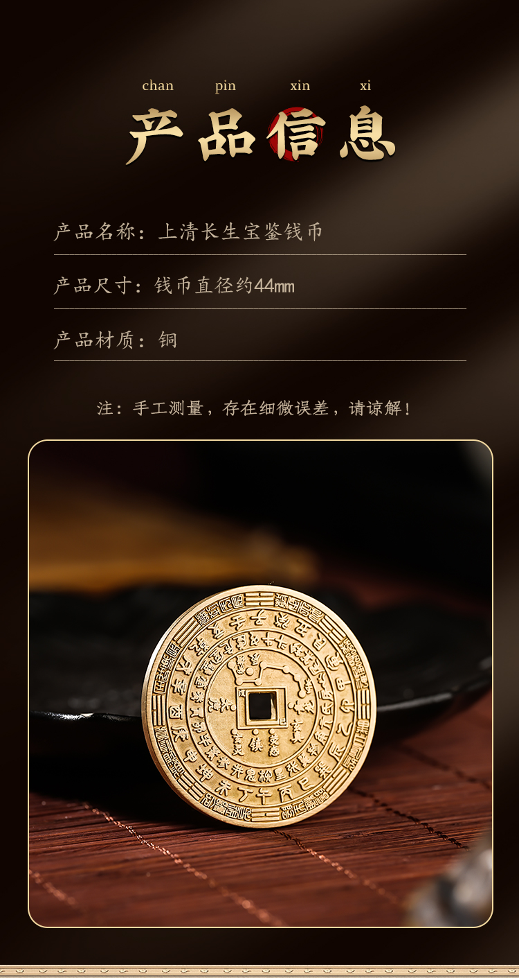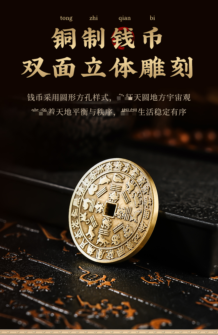 铜钱币长生宝鉴摆件平安扣北斗七星八gua饰品随身小物件