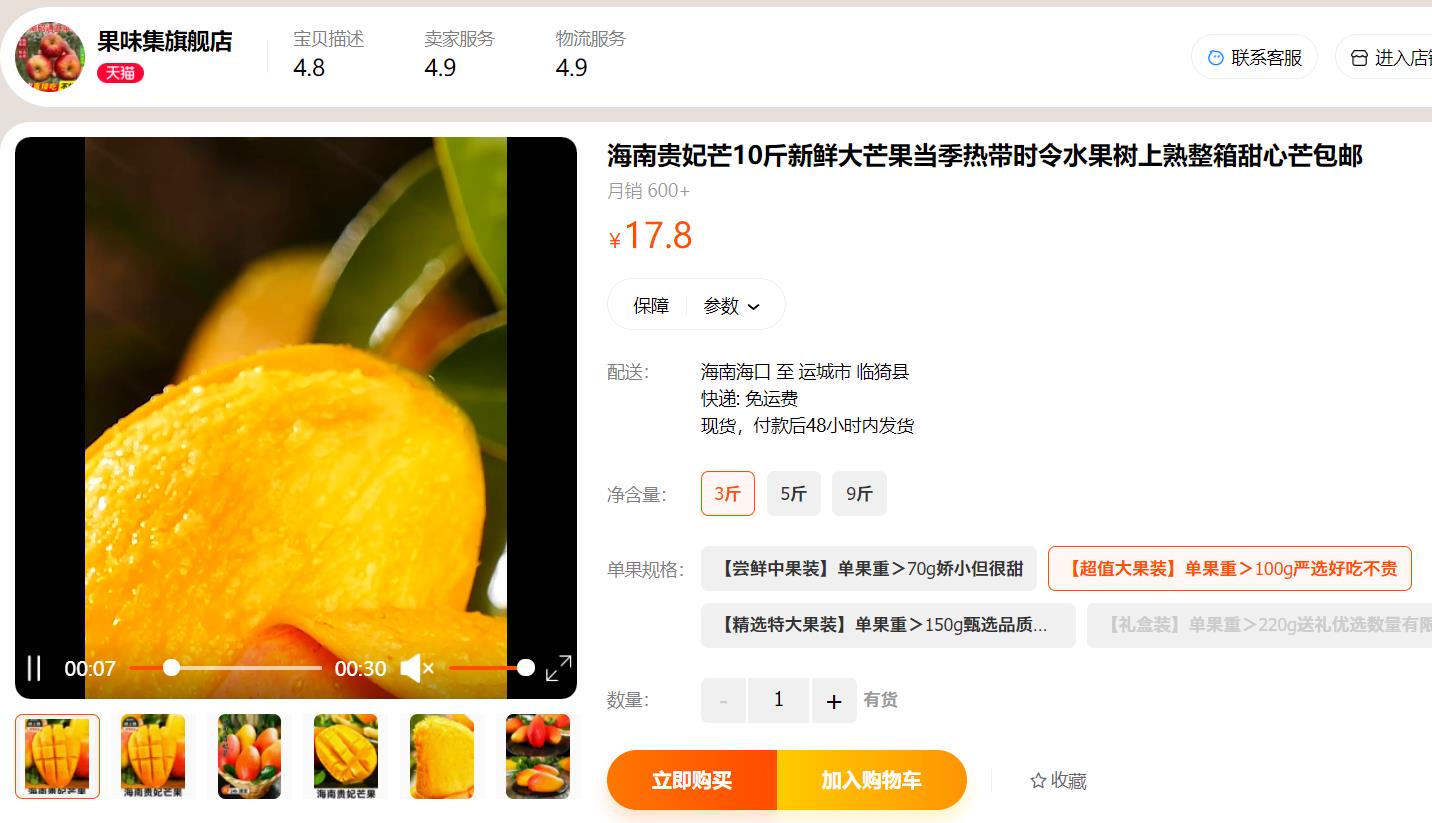 【产地直发】海南香甜贵妃芒 3斤/5斤/8斤-GP
