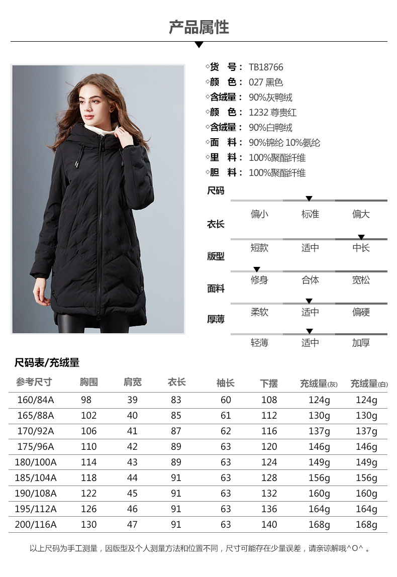 TB18766 坦博尔羽绒服女中长款连帽时尚秋冬新款保暖外套