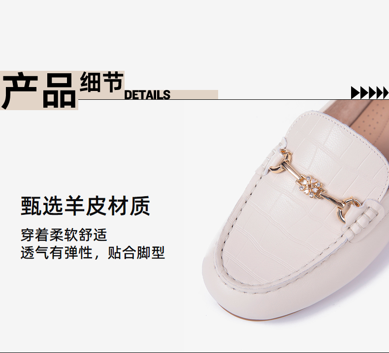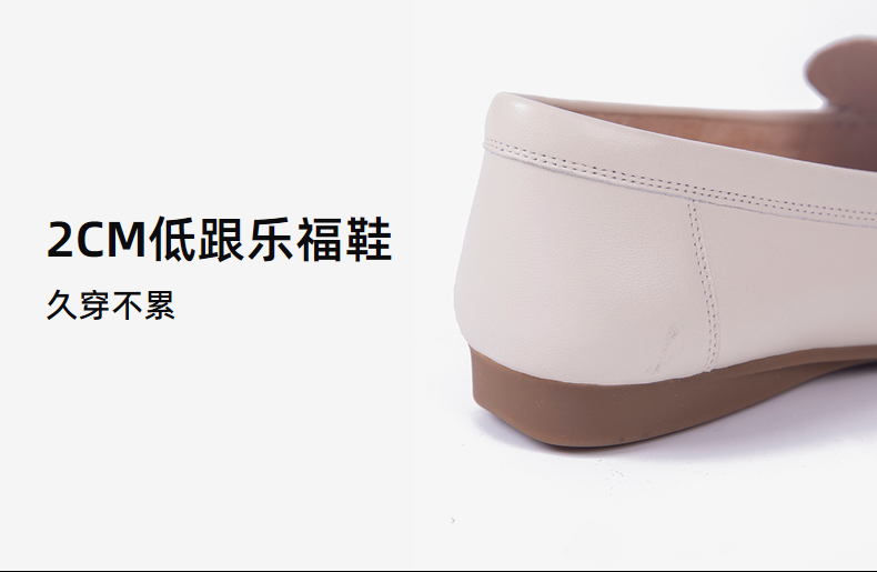 千百度羊皮通勤低跟乐福鞋女款秋季小皮鞋豆豆鞋平底单鞋A24455601