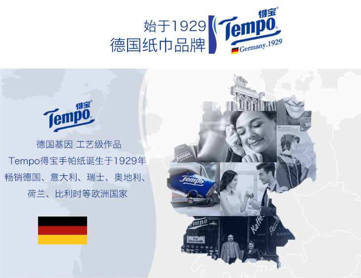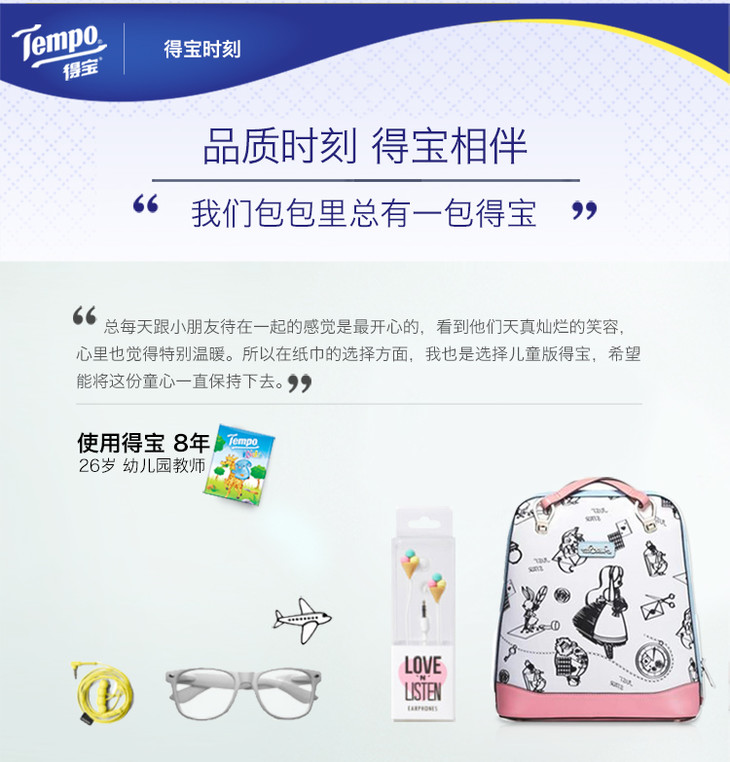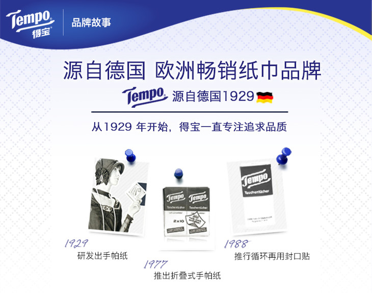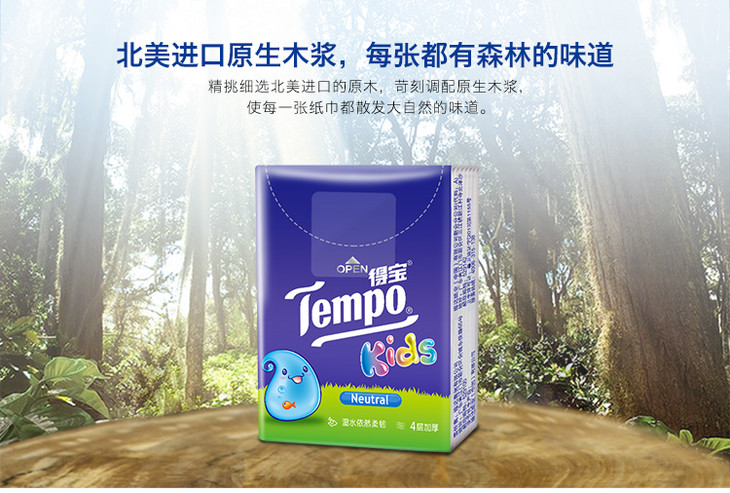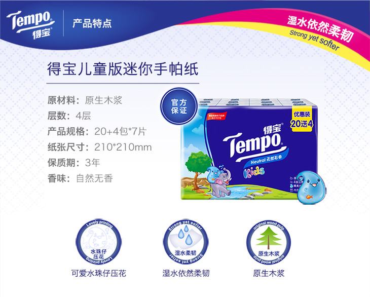 Tempo得宝儿童版天然无香手帕纸4层24包儿童专用手口专用纸巾餐巾纸便携装