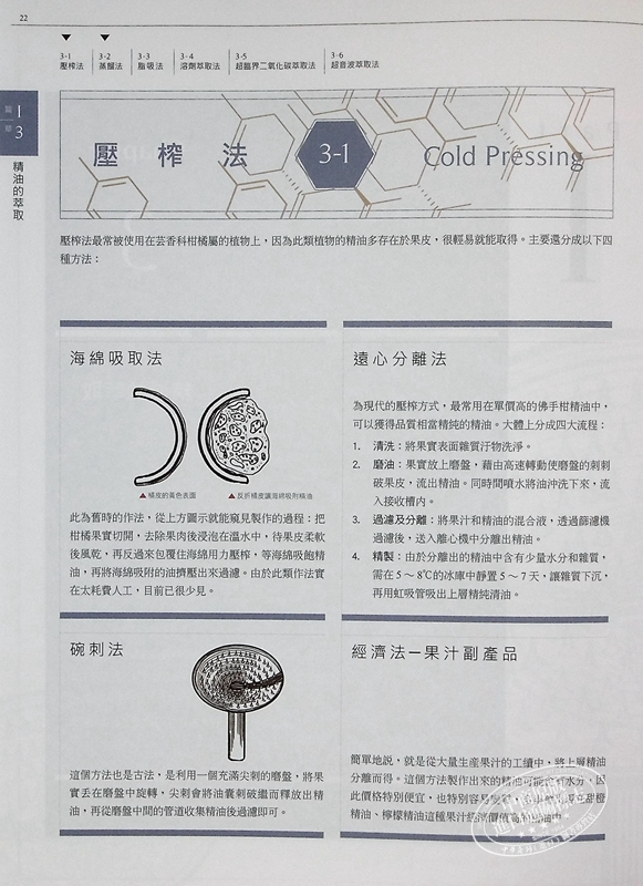 全書分成三大篇,從基礎的芳療理論、單方植物精油的介紹