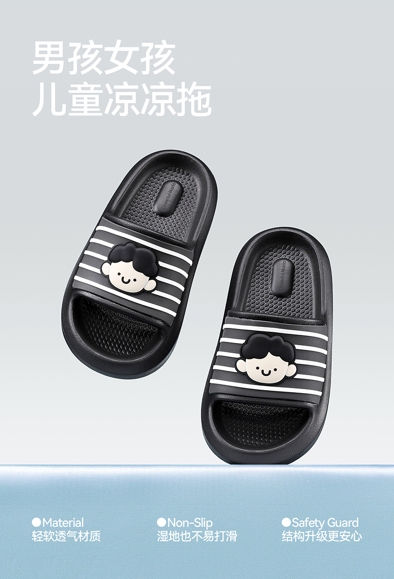 幸福玛丽 男孩女孩卡通头像儿童凉凉拖鞋 NY-1270 轻盈透气材质 不易闷脚捂汗 波纹大底 无惧湿滑坡面