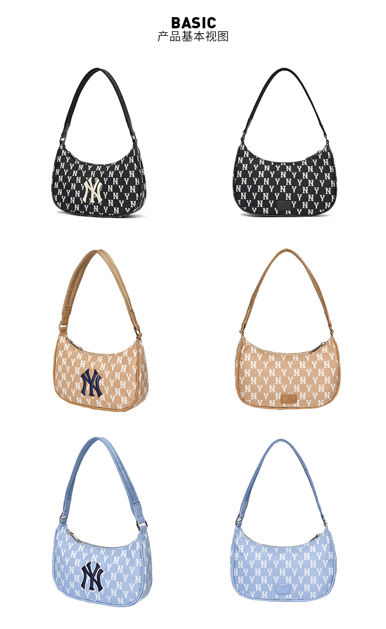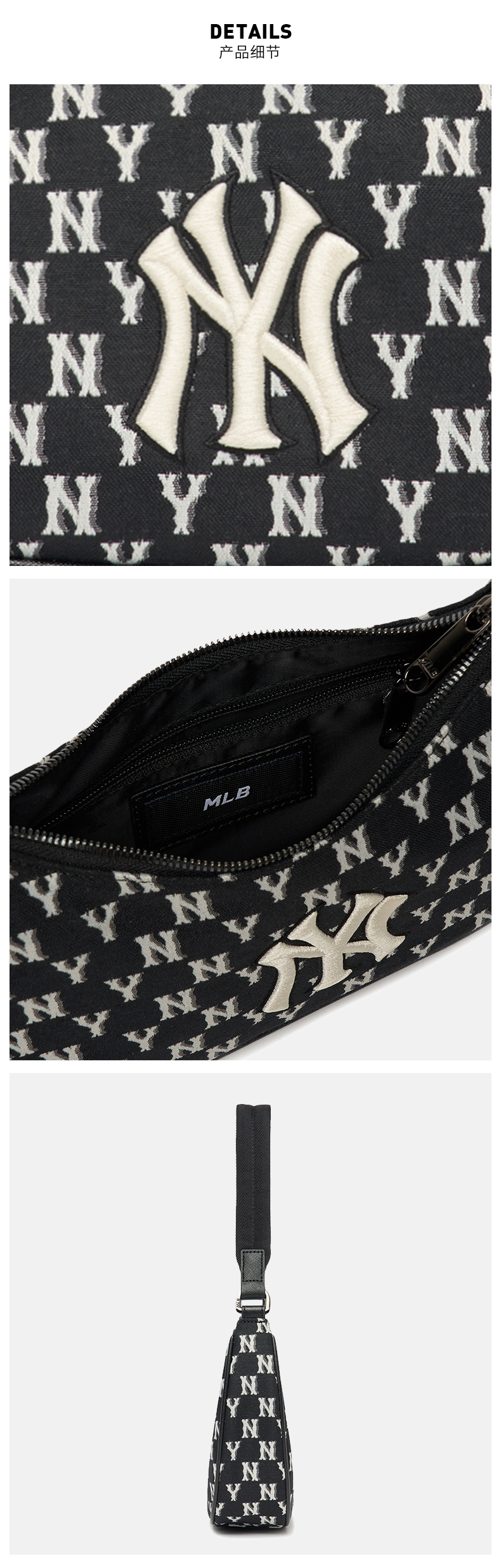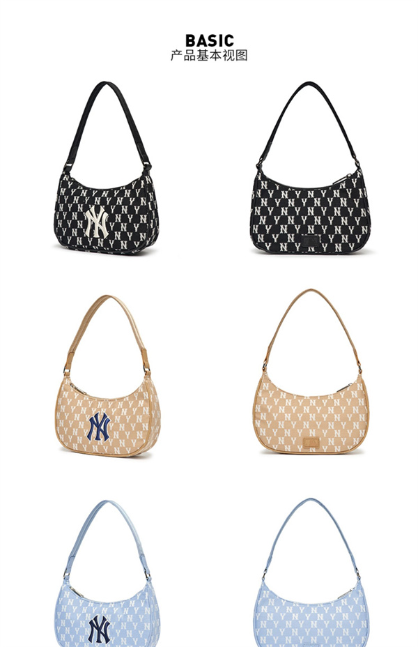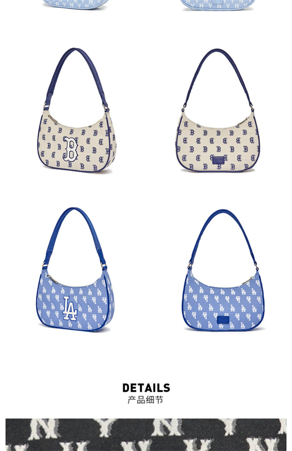 【品牌授权】扫码验证 韩国MLB 新款满印腋下包 卡其色 黑色 浅蓝色 浅米色 浅钴蓝色 新款老花满印休闲时尚运动背包单肩学生书包 3ABQS012N