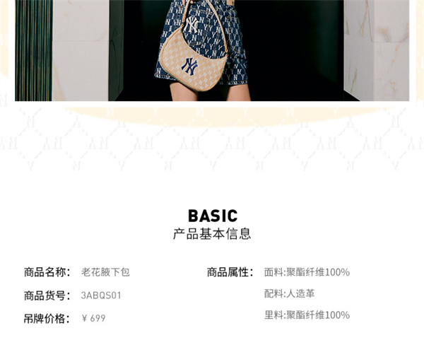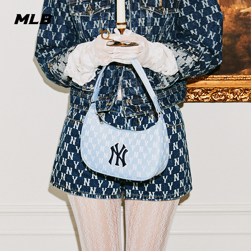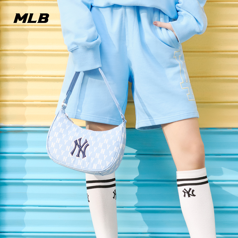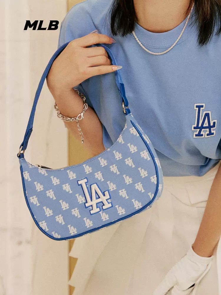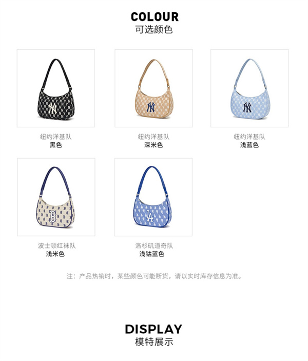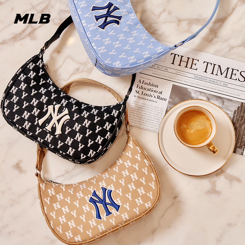 【品牌授权】扫码验证 韩国MLB 新款满印腋下包 卡其色 黑色 浅蓝色 浅米色 浅钴蓝色 新款老花满印休闲时尚运动背包单肩学生书包 3ABQS012N
