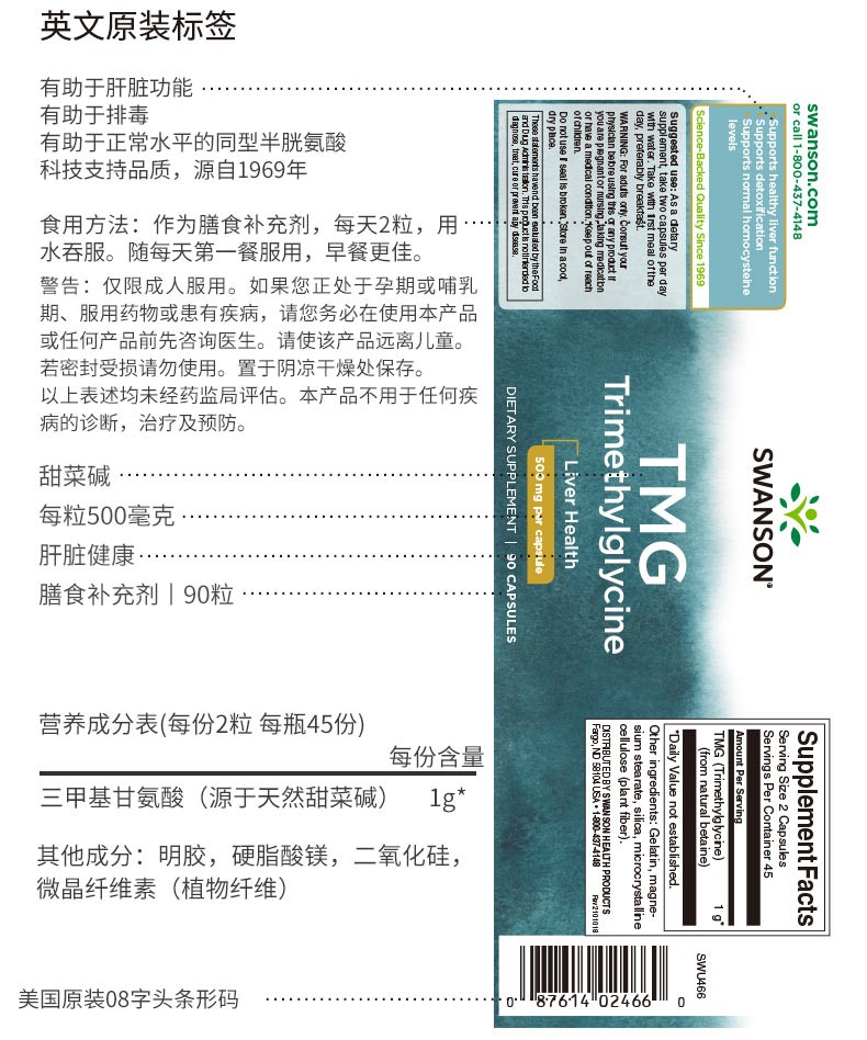 TMG甜菜碱胶囊 500mg/粒 90粒
