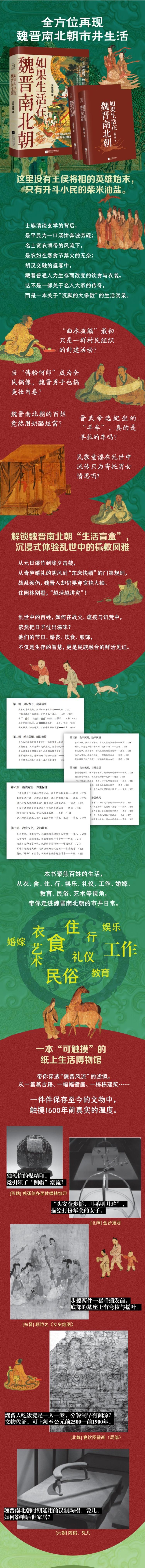 穿越回那个政权更迭、文化碰撞的传奇时代,在动荡中,将生活过成一种美学与哲学!本书以独特的“生活考古”视角,从节庆习俗、服饰妆容、饮食文化、出行方式、婚丧嫁娶等七大角度,全方位还原魏晋南北朝百姓的日常生活。这里没有王侯将相的权谋史诗,只有升斗小民的柴米油盐——“东床快婿”的门第玄机、“五石散”背后的养生狂热、“曲水流觞”的民间风俗、男子傅粉施朱的潮流……作者以《晋书》《宋书》《世说新语》《荆楚岁时记》等扎实文史材料为基础,结合文物图像,为你还原一个不止有清谈玄学,更有烟火气息与生存智慧的魏晋南北朝。