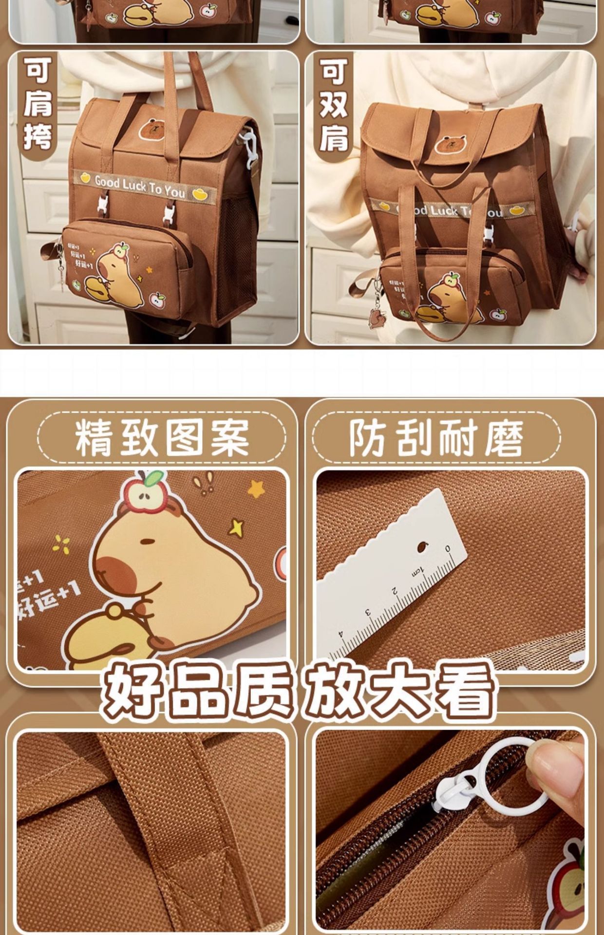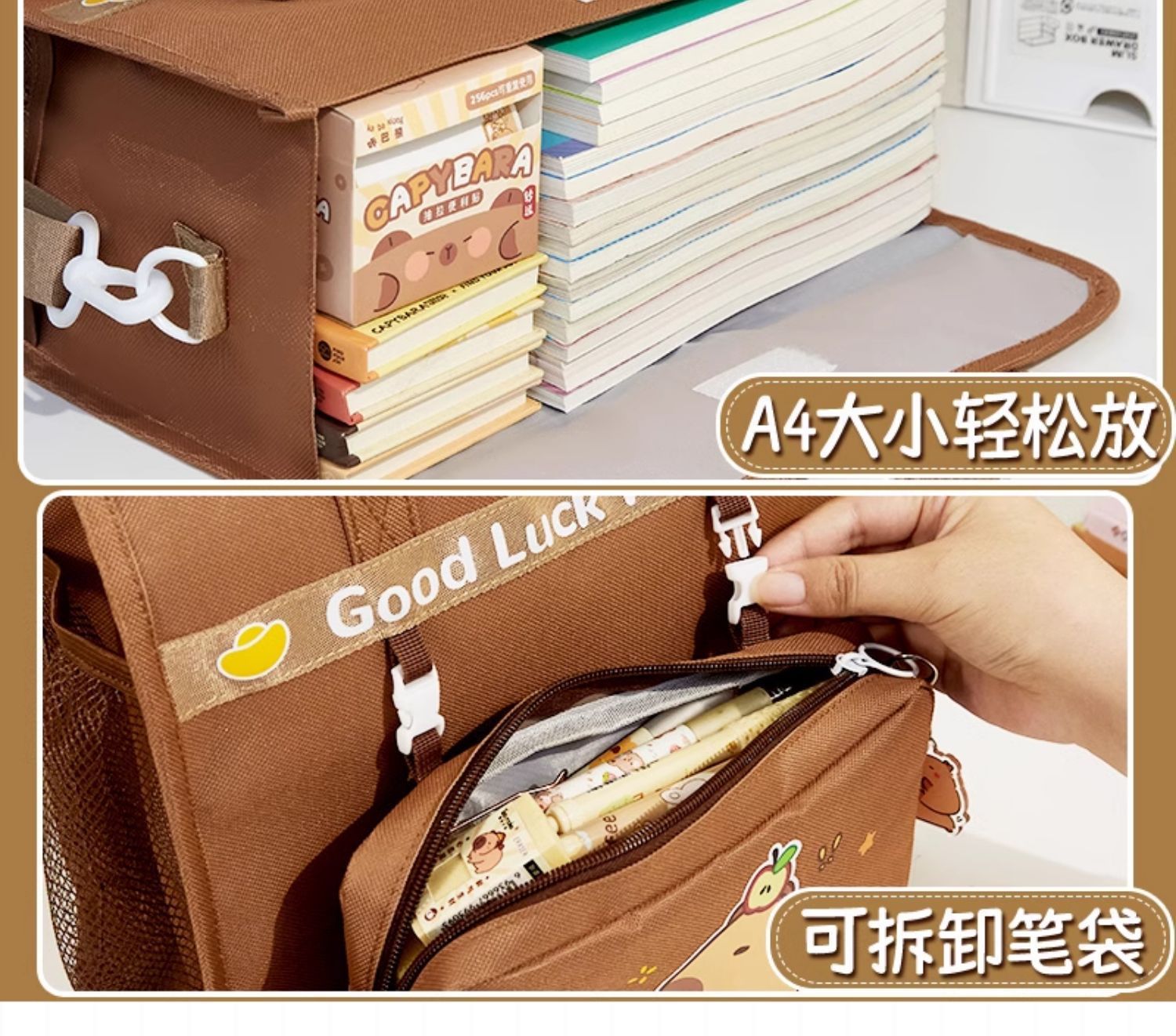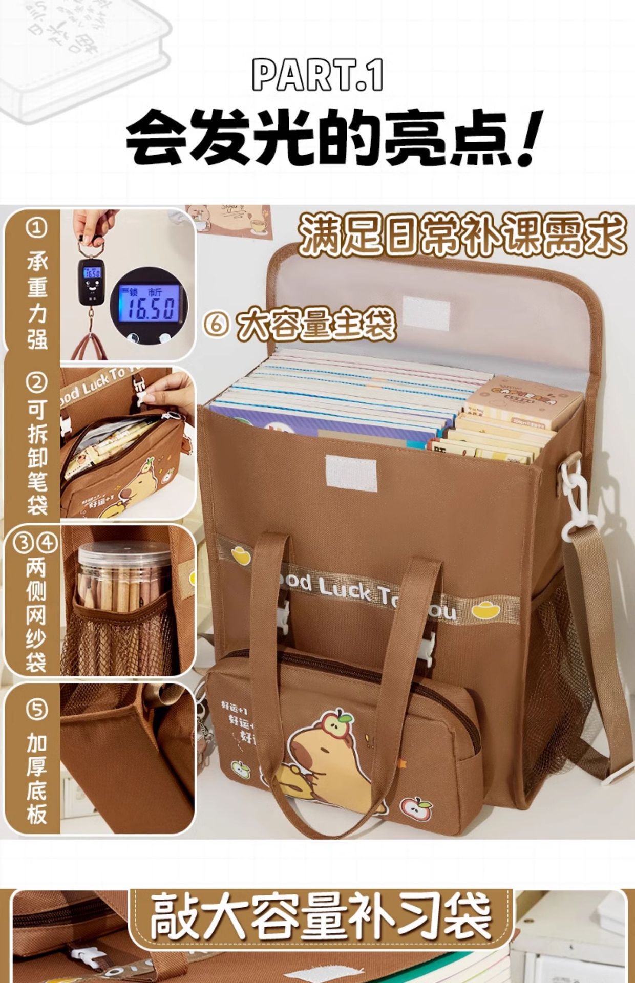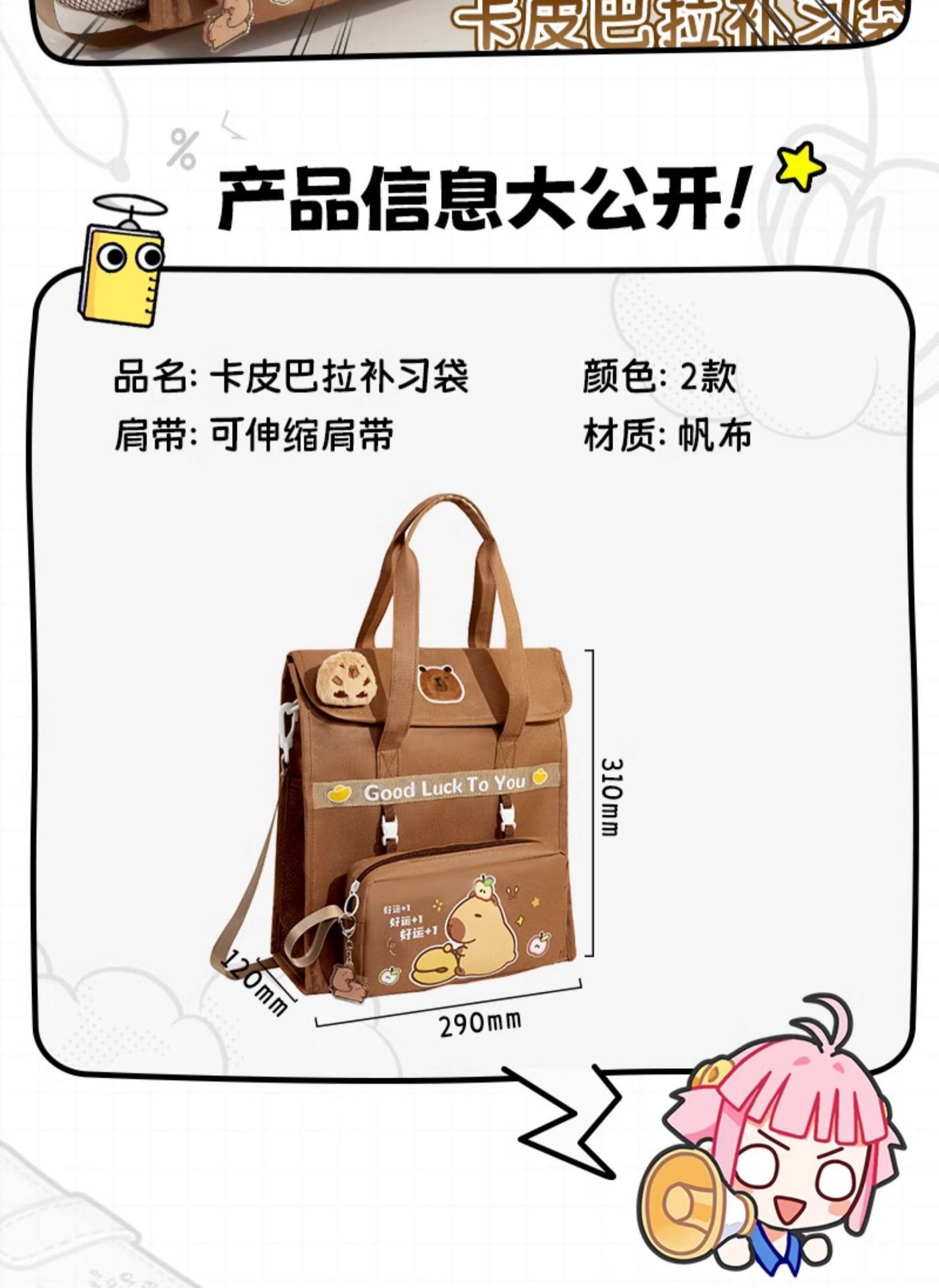 【敲大容量❗可拆卸笔袋】卡皮巴拉补习袋升级可斜挎双肩学生手提袋拎书袋男女水豚帆布书包。rf