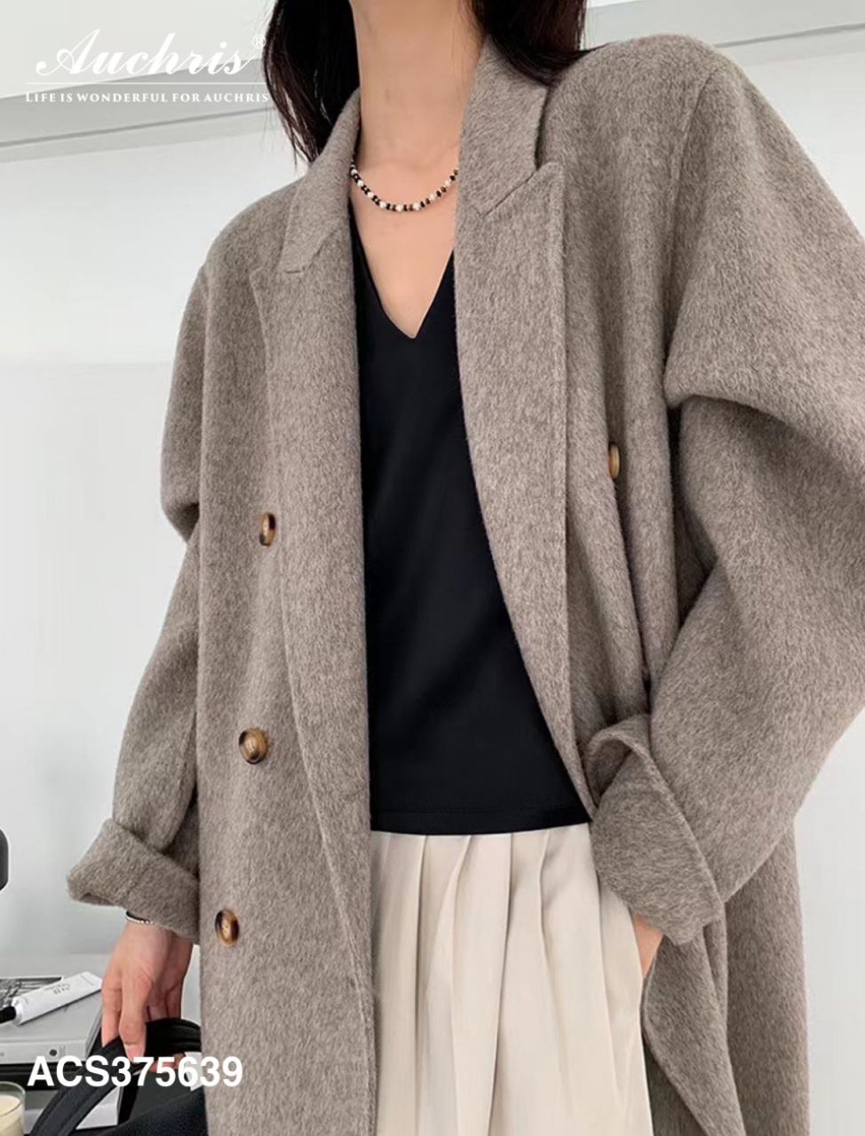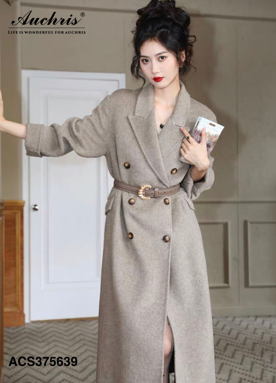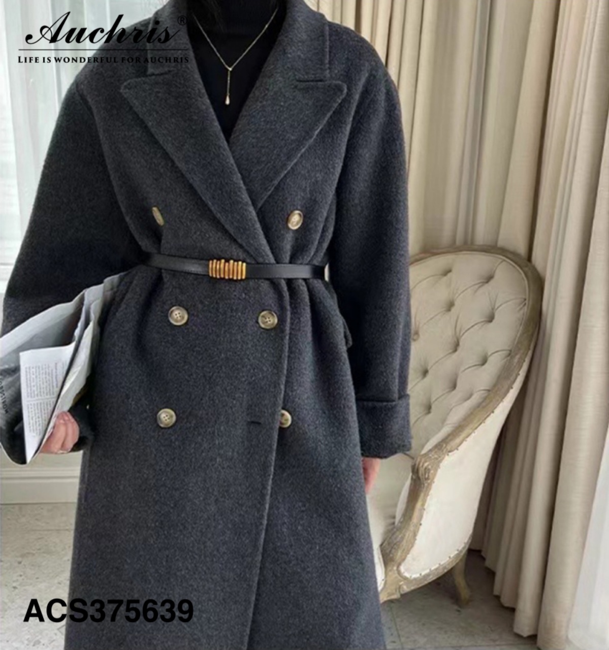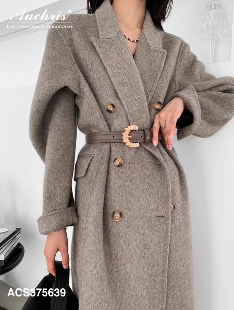 韩版廓形经典排扣双面羊绒大衣(不包含腰带)