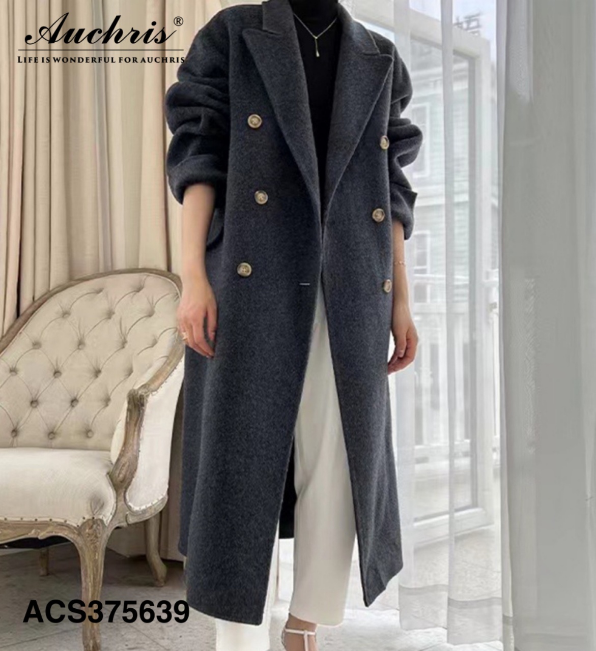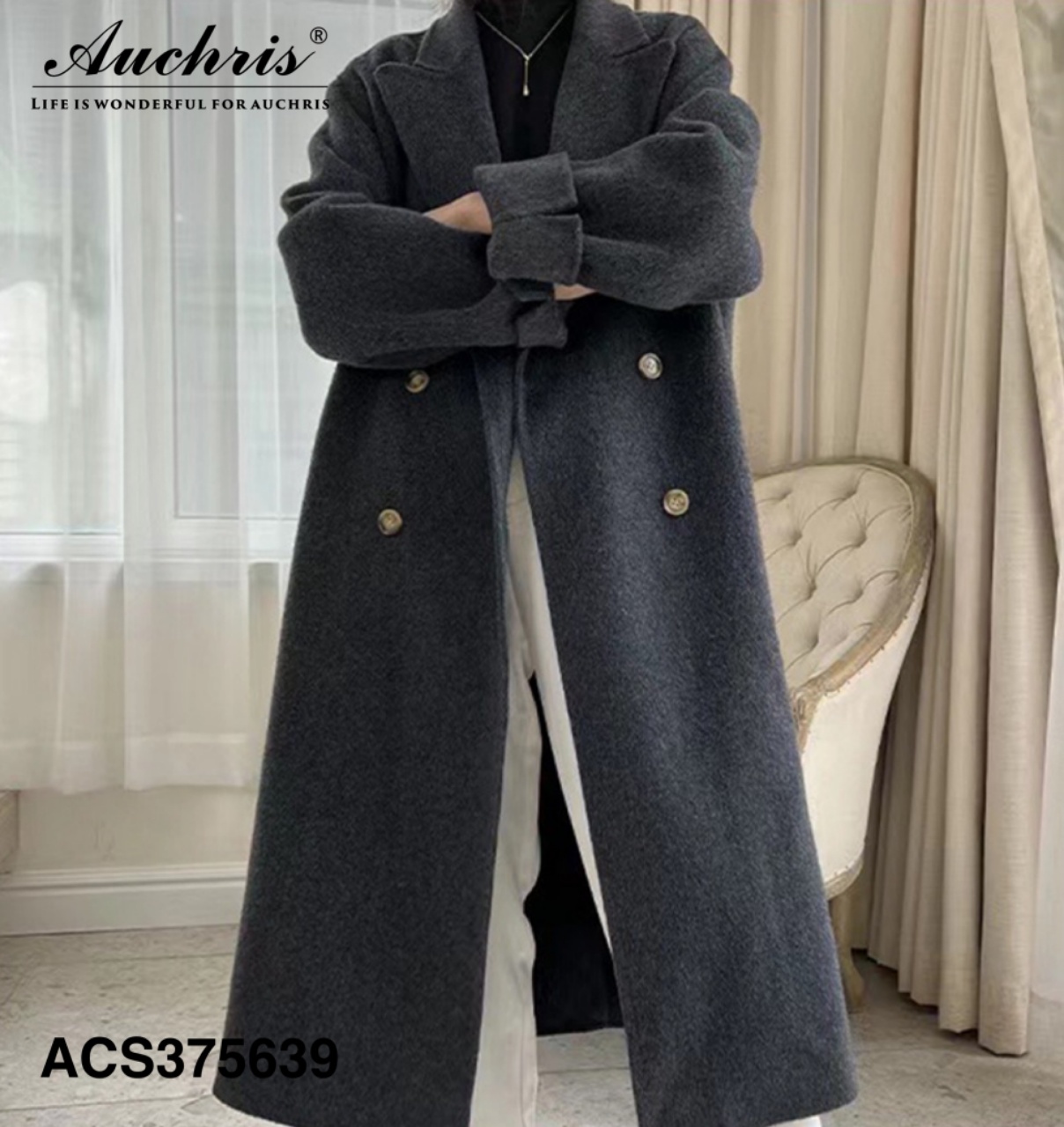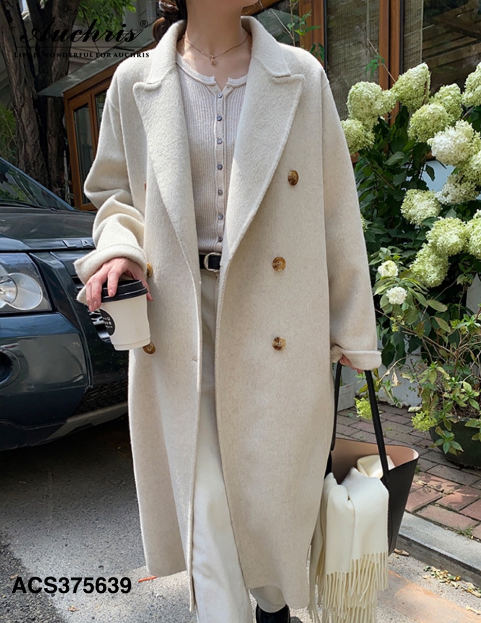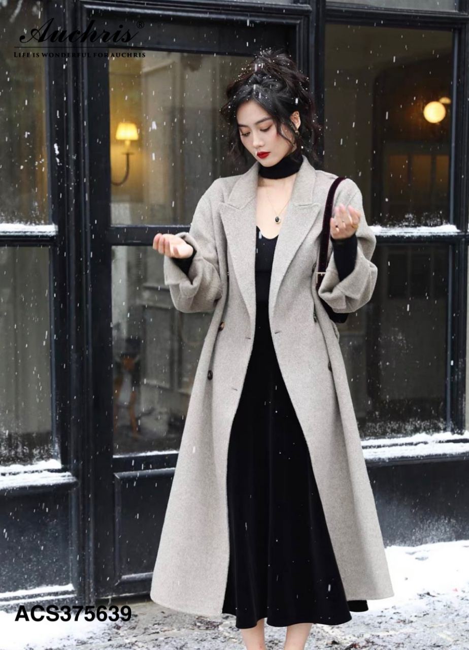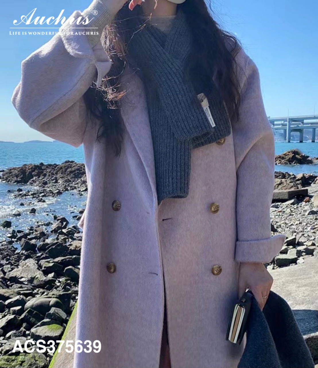 韩版廓形经典排扣双面羊绒大衣(不包含腰带)