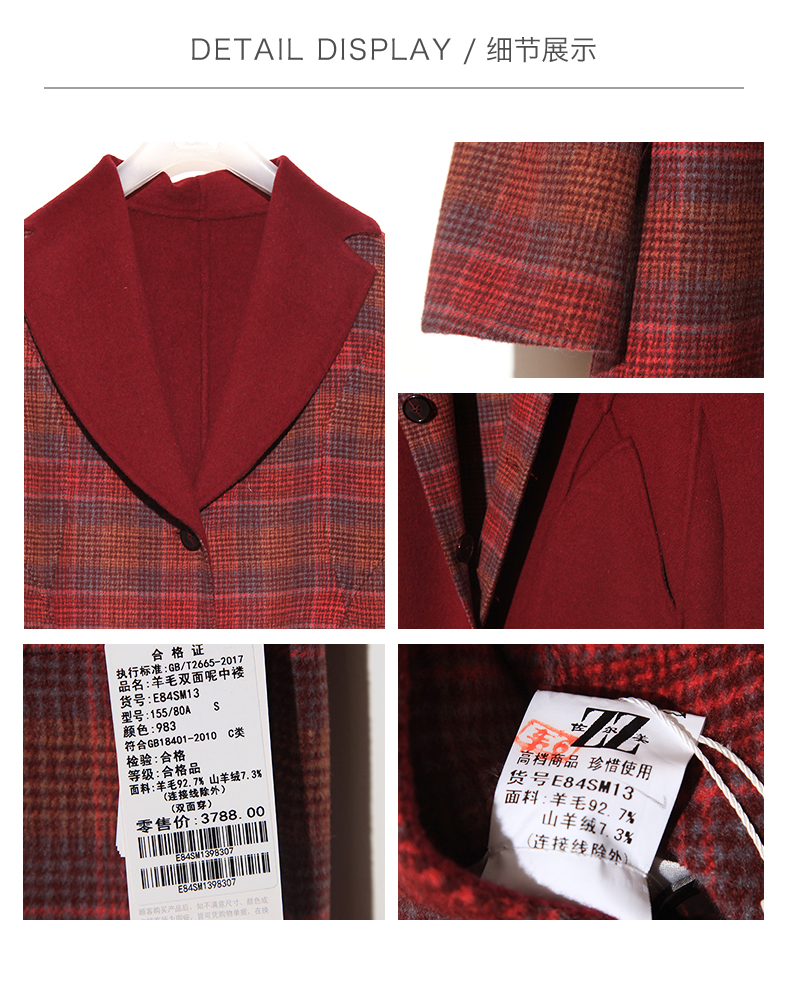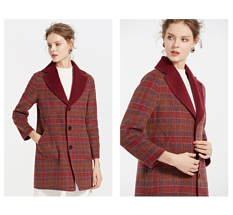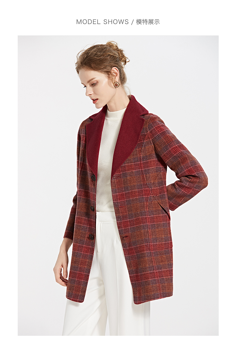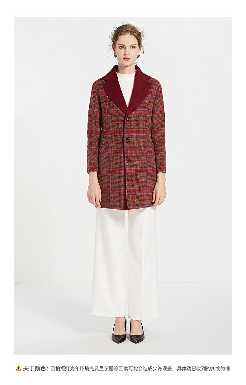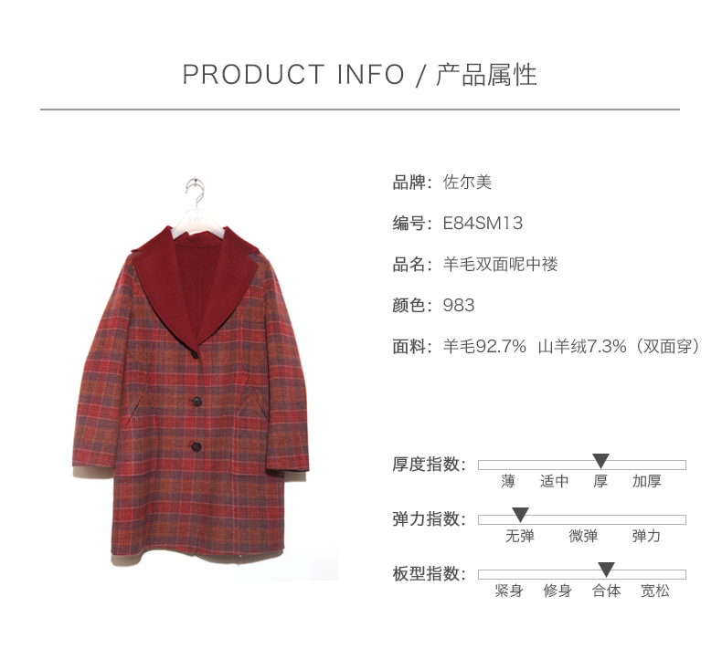 佐尔美新品秋冬新品 中老年格纹长款两面穿羊毛双面呢大衣E84SM13
