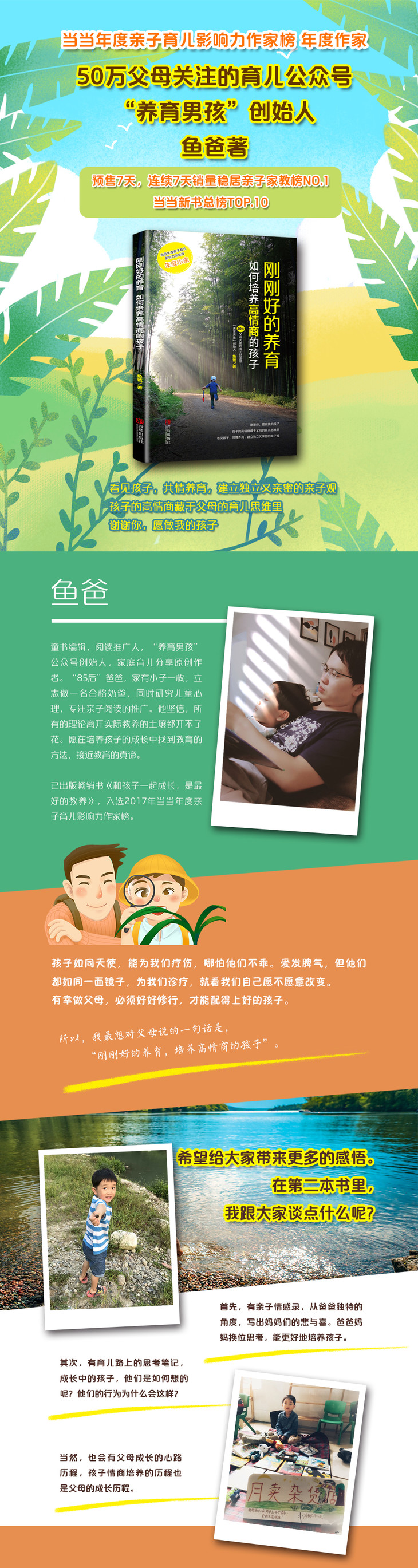 鱼爸在今年新出的这本书《刚刚好的养育:如何培养高情商的孩子》中,试着通过自己的一些亲身实践,给大家分享一些经验,找到答案。