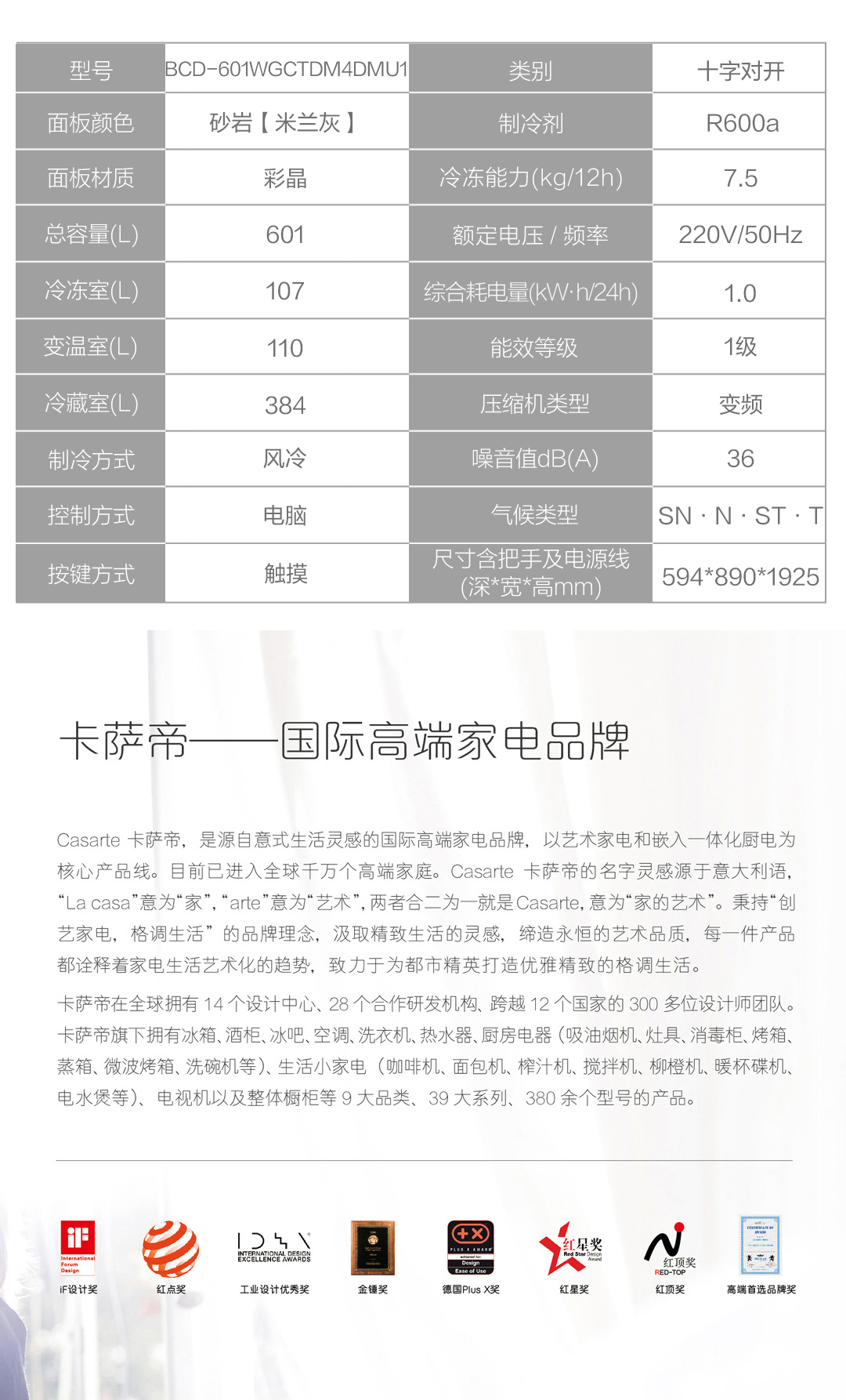 卡萨帝(Casarte)冰箱 BCD-601WGCTDM4DMU1