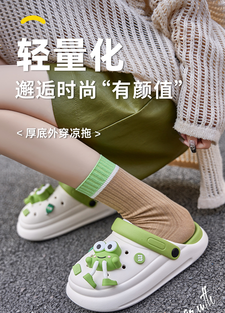 一鞋两穿【邂逅时尚“有颜值“!厚底外穿凉拖鞋】夏季外穿洞洞鞋女新款防滑包头eva凉拖鞋透气防臭厚底踩屎感拖鞋,防滑大底 无惧涉水场景。ry