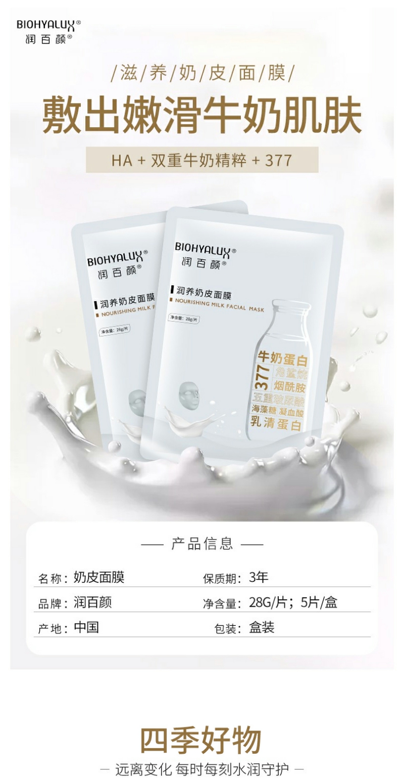 【YZ】润百颜377润养奶皮面膜精粹玻尿酸弹嫩补水锁水保湿滋润牛奶肌