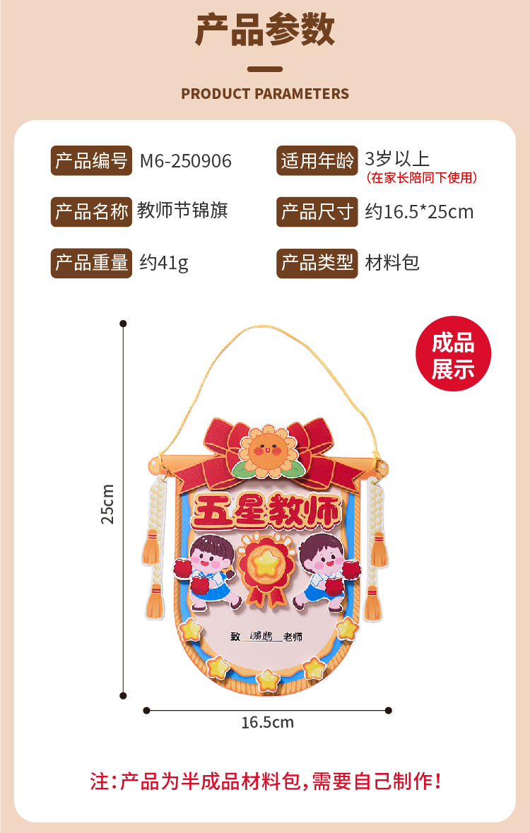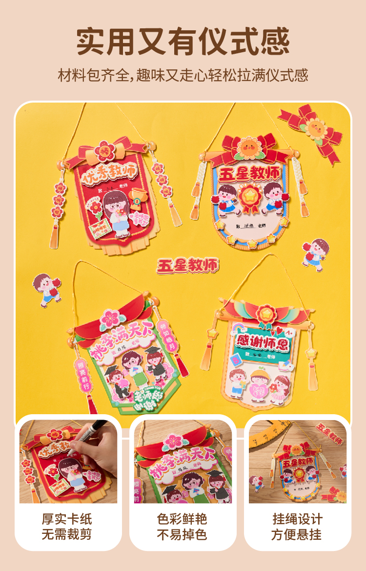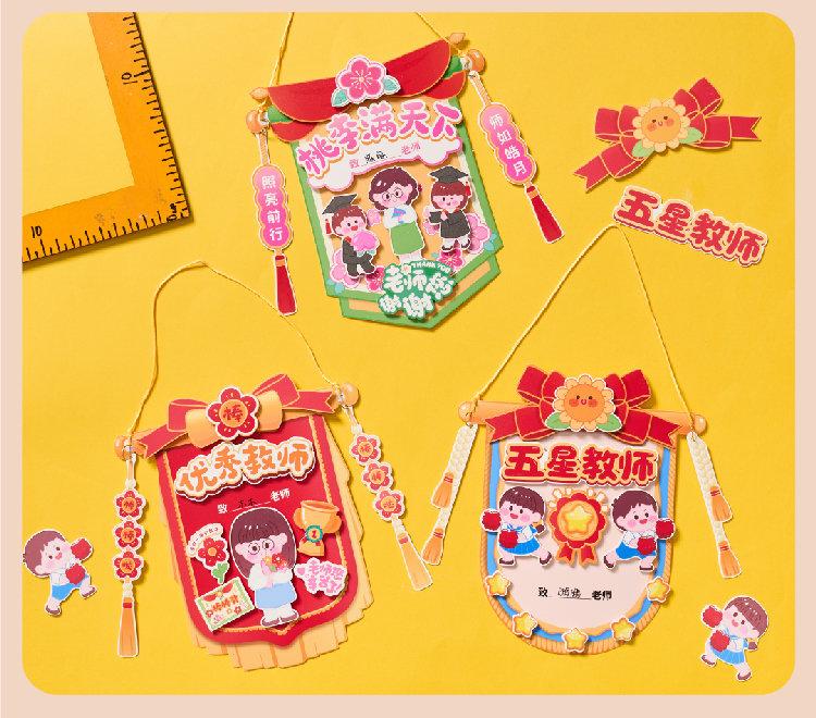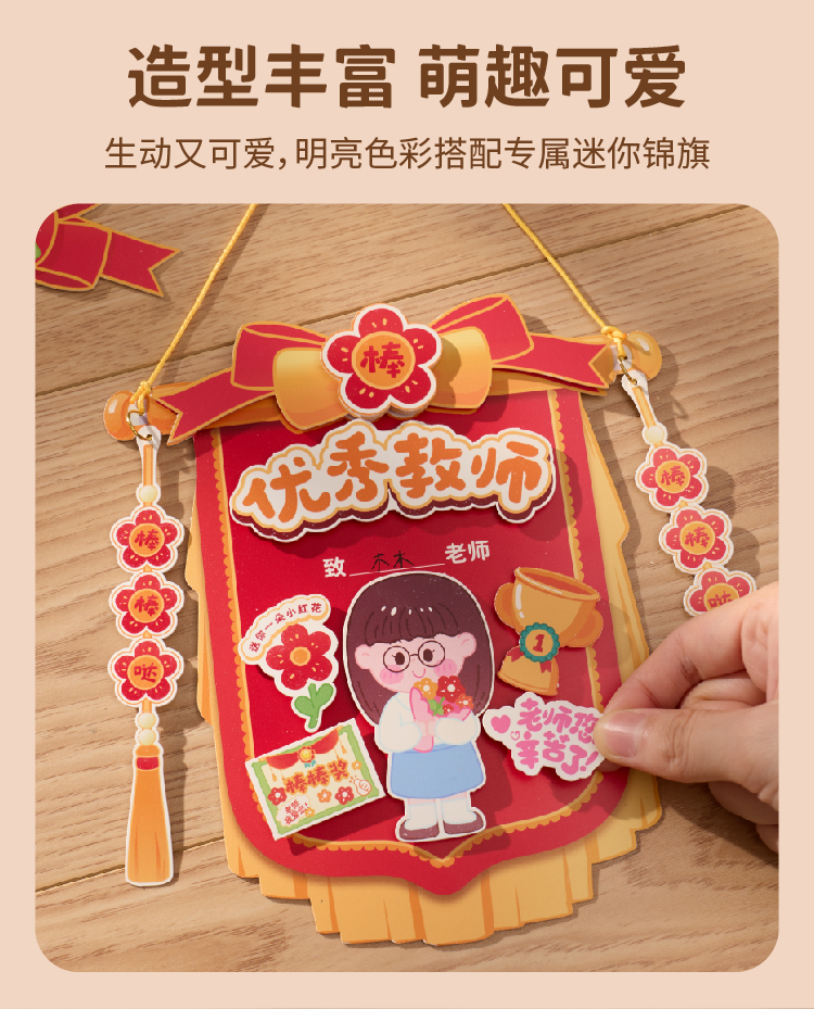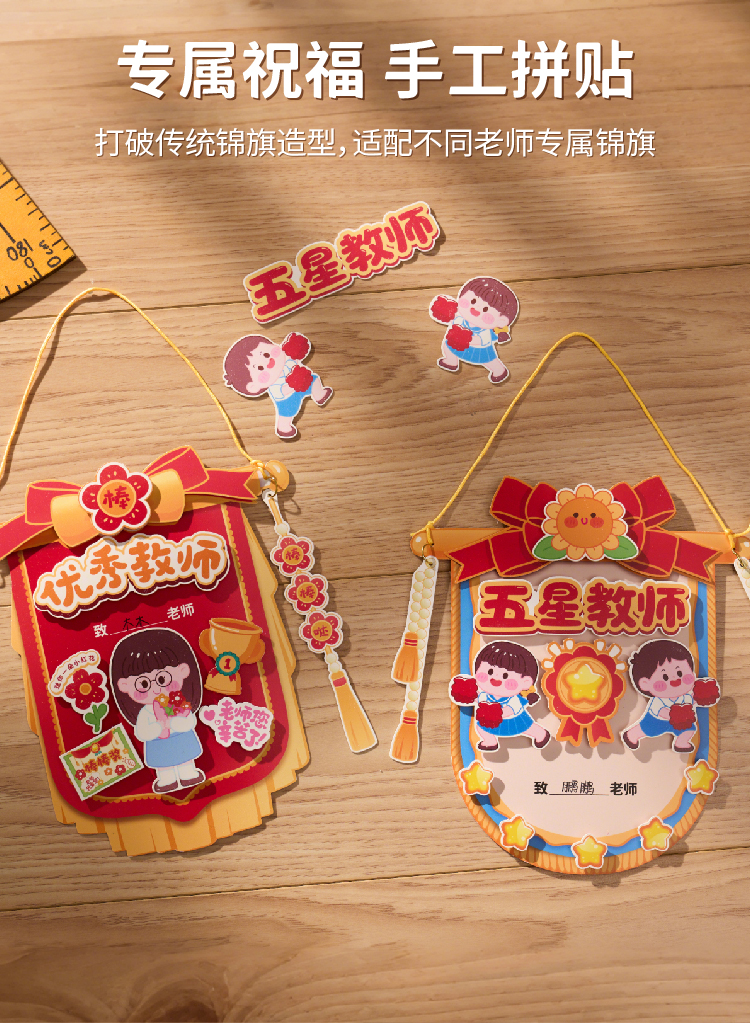 教师节礼物锦旗贺卡手工diy儿童制作材料包幼儿园送老师2025新款
