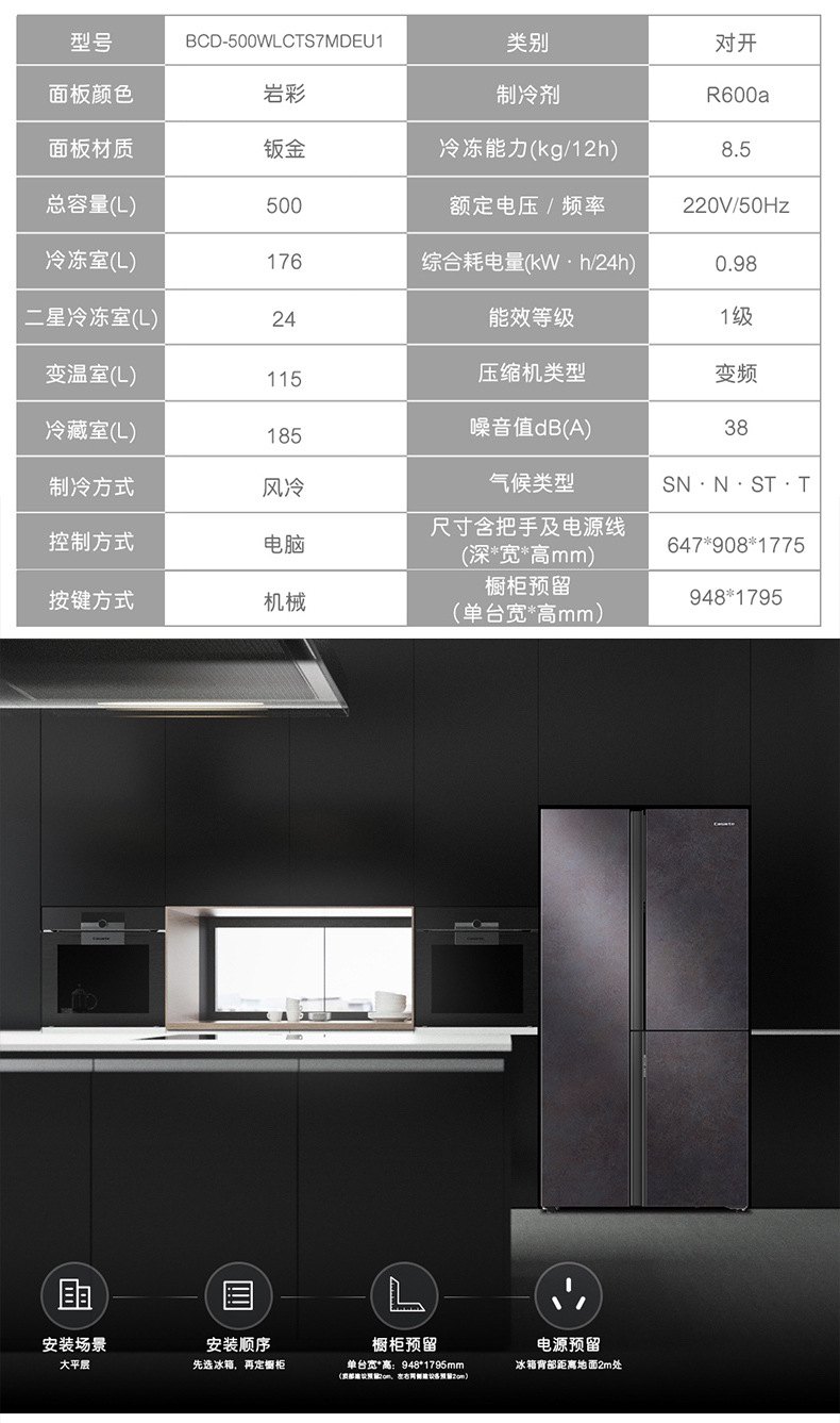 卡萨帝(Casarte)冰箱BCD-500WLCTS7MDEU1