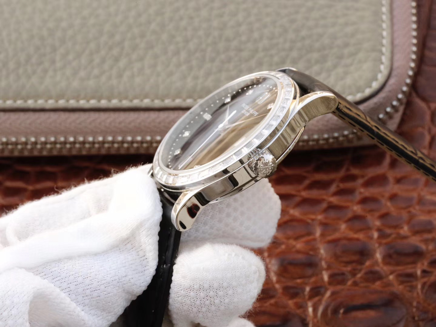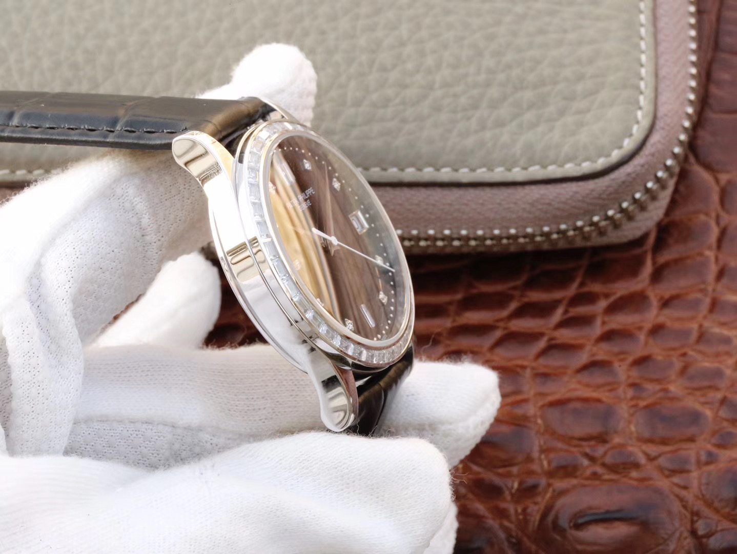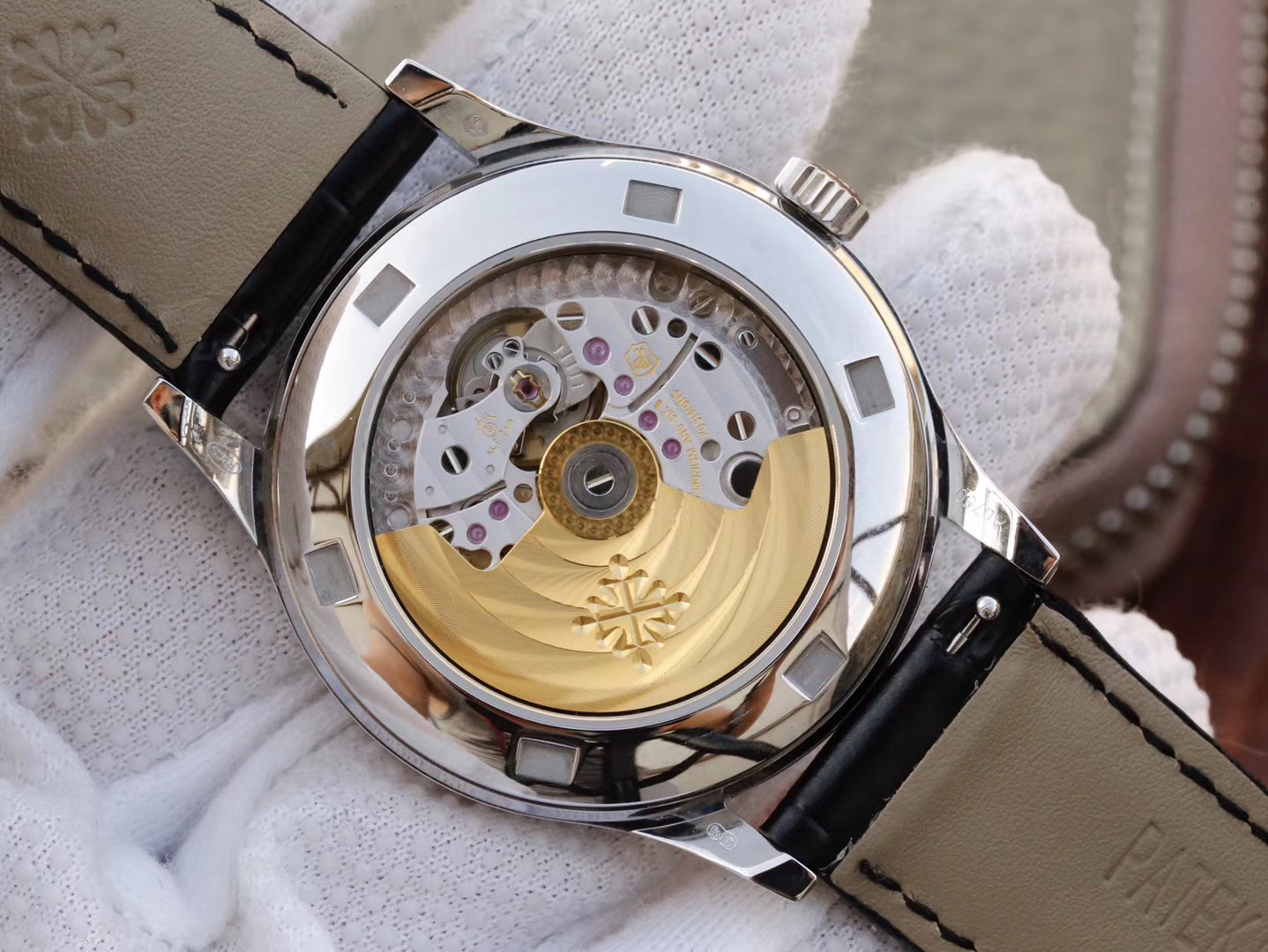 ZF心诚所致,震撼推出精细美学代表之作——Patek Philippe古典系列——PP.5298P【精彩细节】腕表尺寸38mmX9mm 薄而有质1.表壳慢工出细活,极致打磨,独家还原出正品的完美比例和特有质感。2.刻度,指针采用最新的贵金属电镀技术加持,效果更佳出彩!3."锅盖型"微凸蓝宝表镜,版型与正品一致,效果通透,辨时清晰。【引领一体机时代】采用定制版Cal.324一体机——更薄,更稳,更像。【表带】经典意大利小牛皮表带,纹路清晰,质感上乘。针式表扣打磨齐整光亮,通用原装无压力。高贵如斯,经典永恒,一旦拥有,别无所求。ZF心诚所致,震撼推出精细美学代表之作——Patek Philippe古典系列——PP.5298P