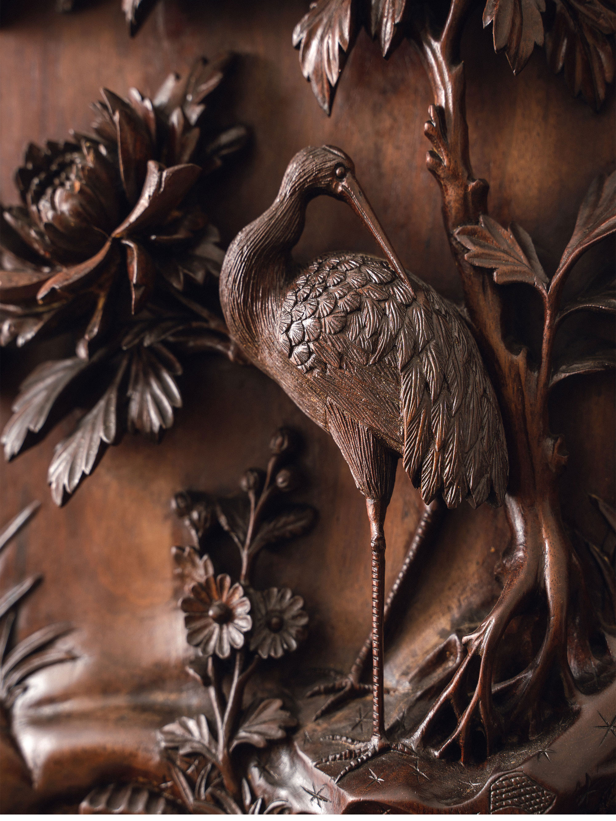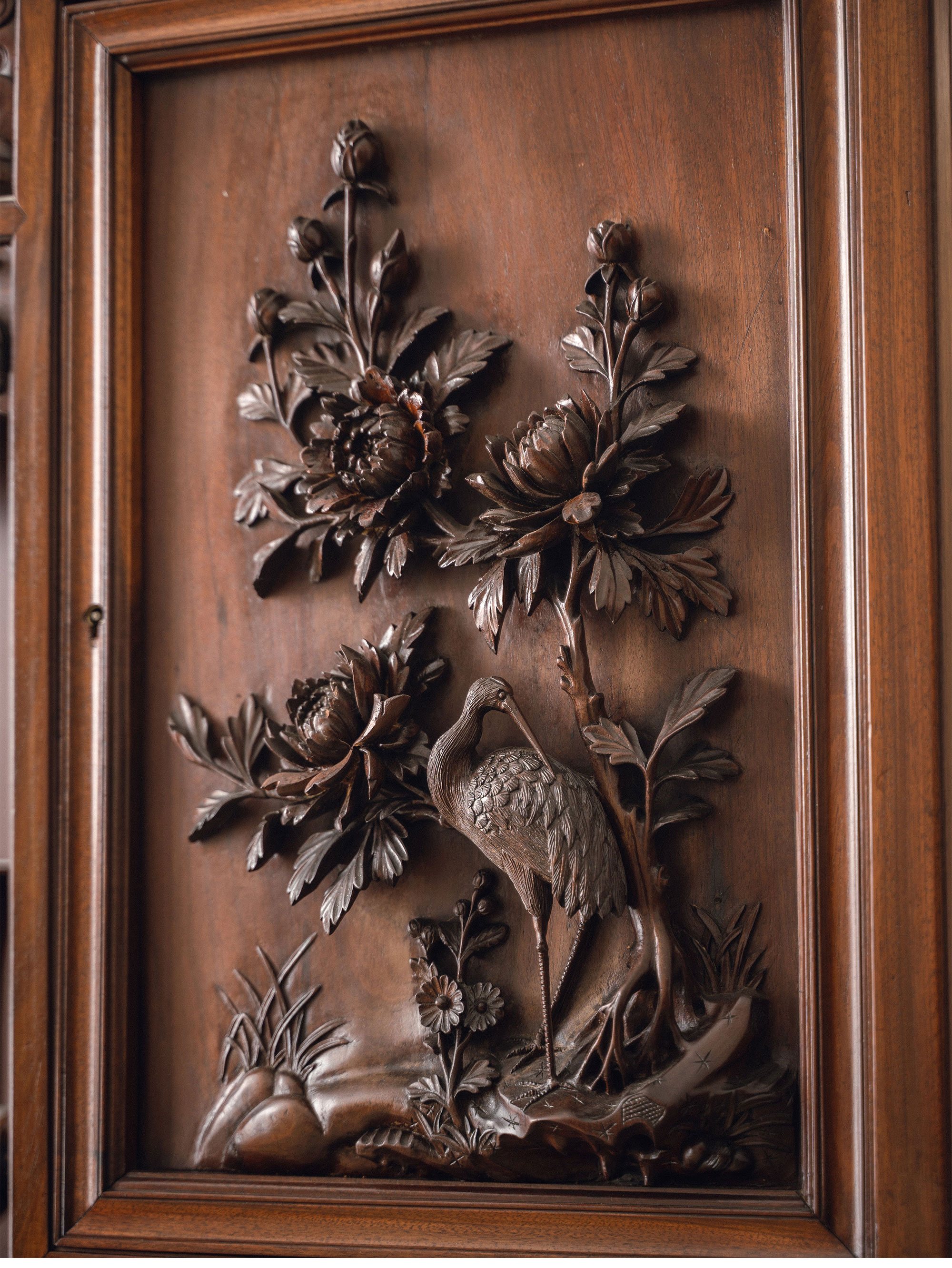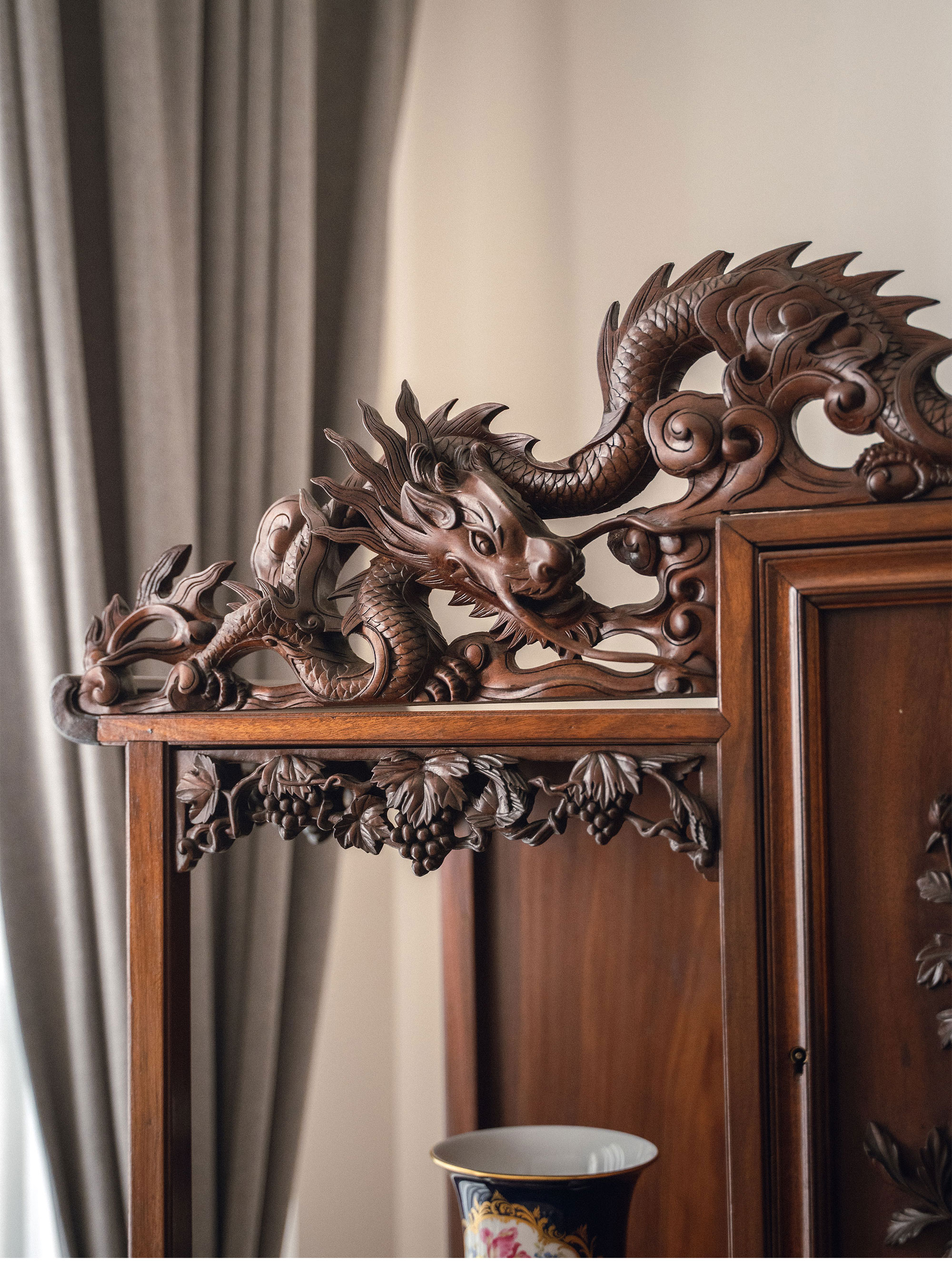 20世纪初法国出品维多东方风格高浮雕祥龙花纹装饰缅甸花梨木多宝阁
