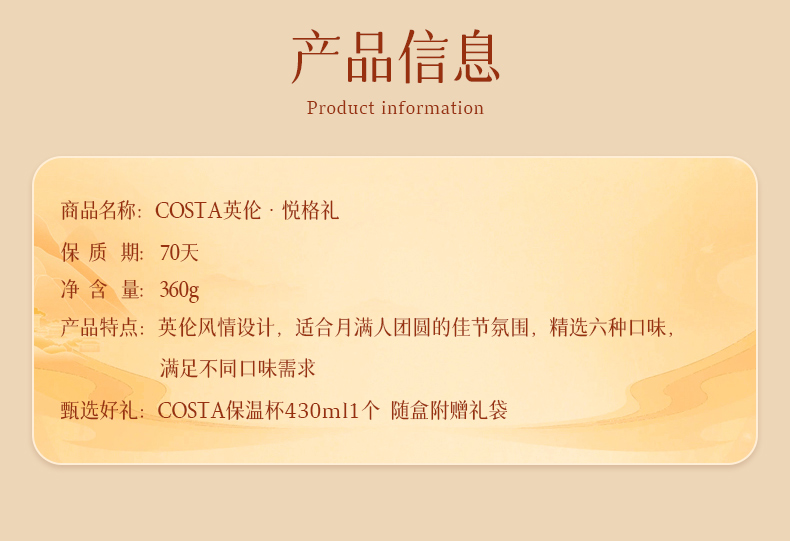 【汇总SKU】2025costa咖世家月饼礼盒 流心奶黄金秋限定英伦雅致中秋礼品 保温杯 收纳箱