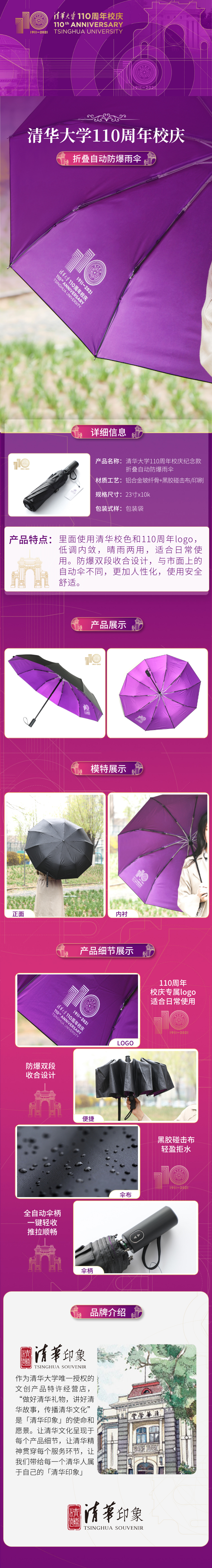 清华110周年校庆款三折自动防爆冲折叠雨伞