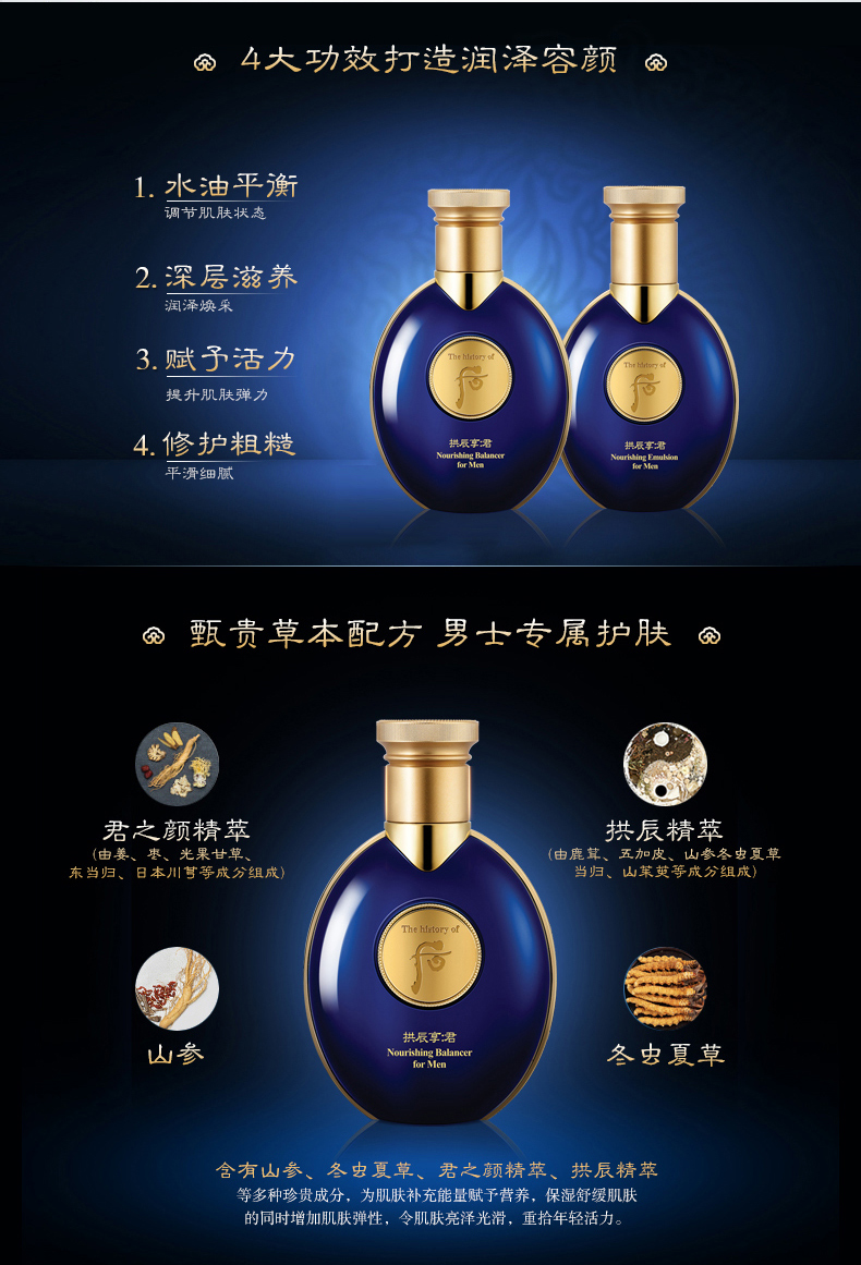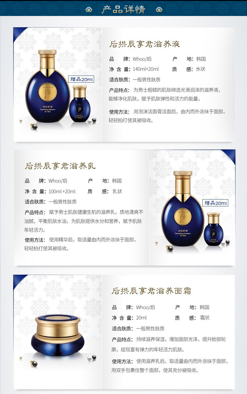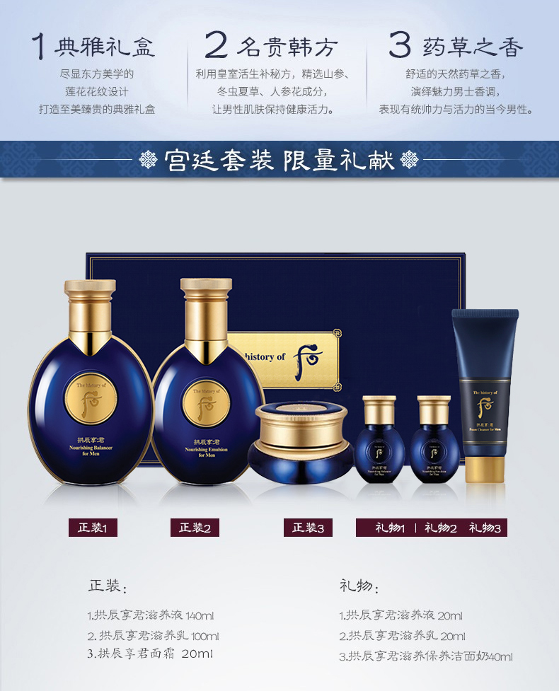 【中欧班列精选】【男士补水】韩国whoo后拱辰享君男士滋养水乳霜套盒三件套340MLylpy