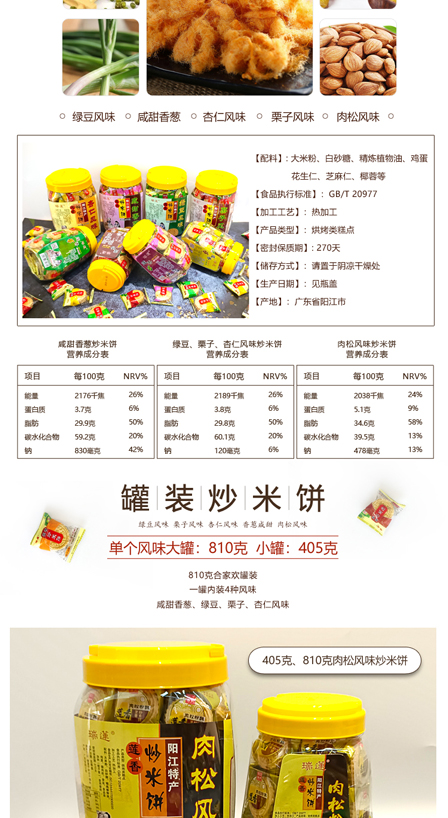 莲香 瑞莲·罐装炒米饼·肉松绿豆栗子香葱风味【阳江】