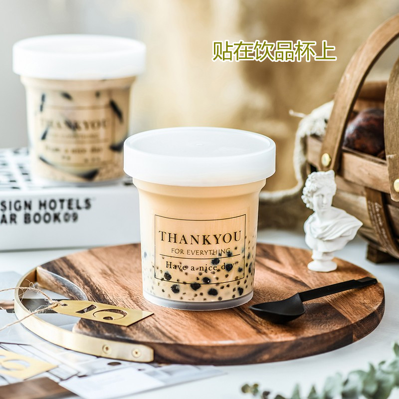 贴纸 透明THANK YOU/白色TODAY 饮品贴纸甜品贴纸 奶茶芋圆杯贴纸
