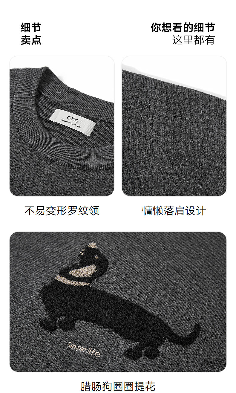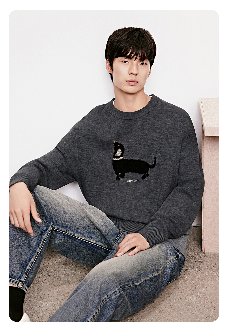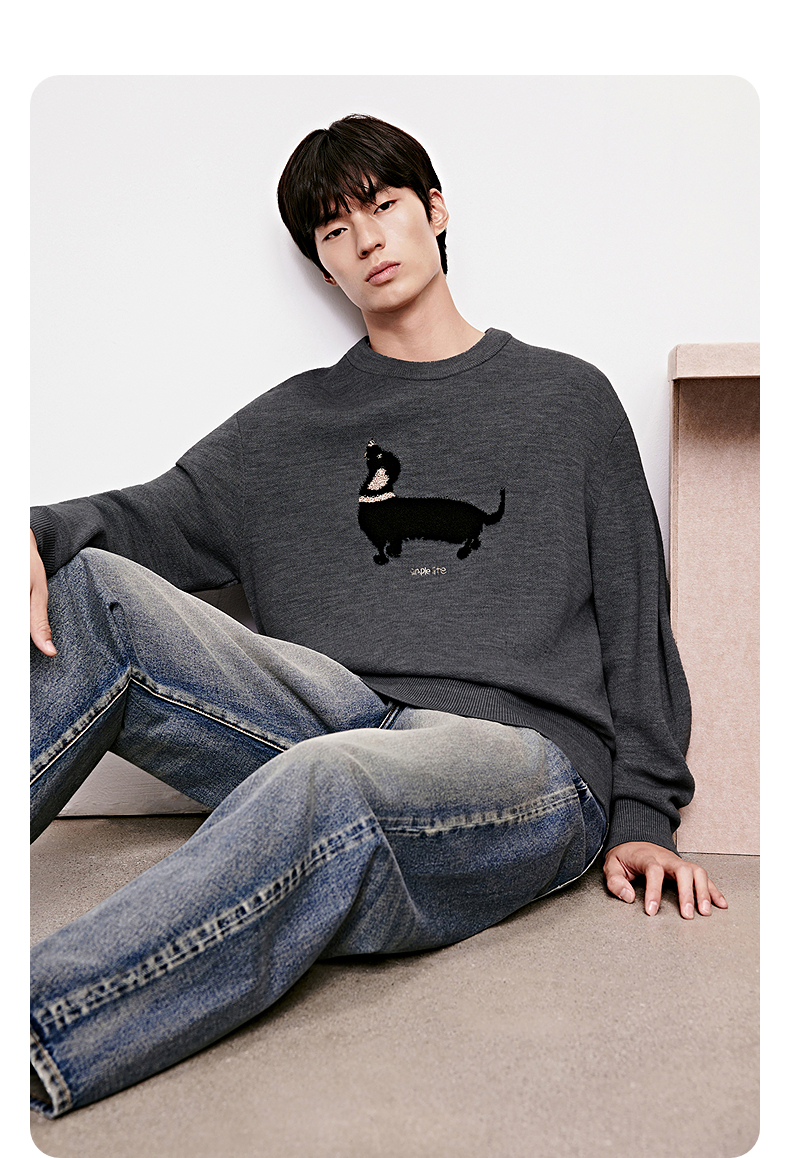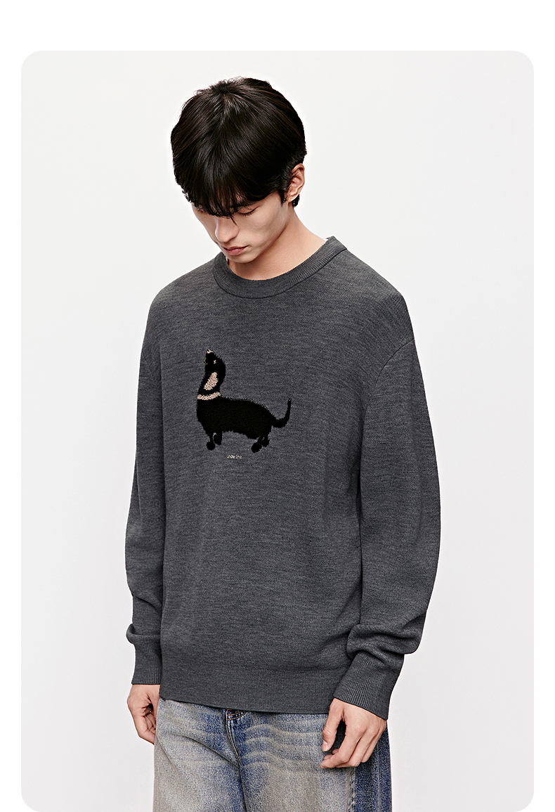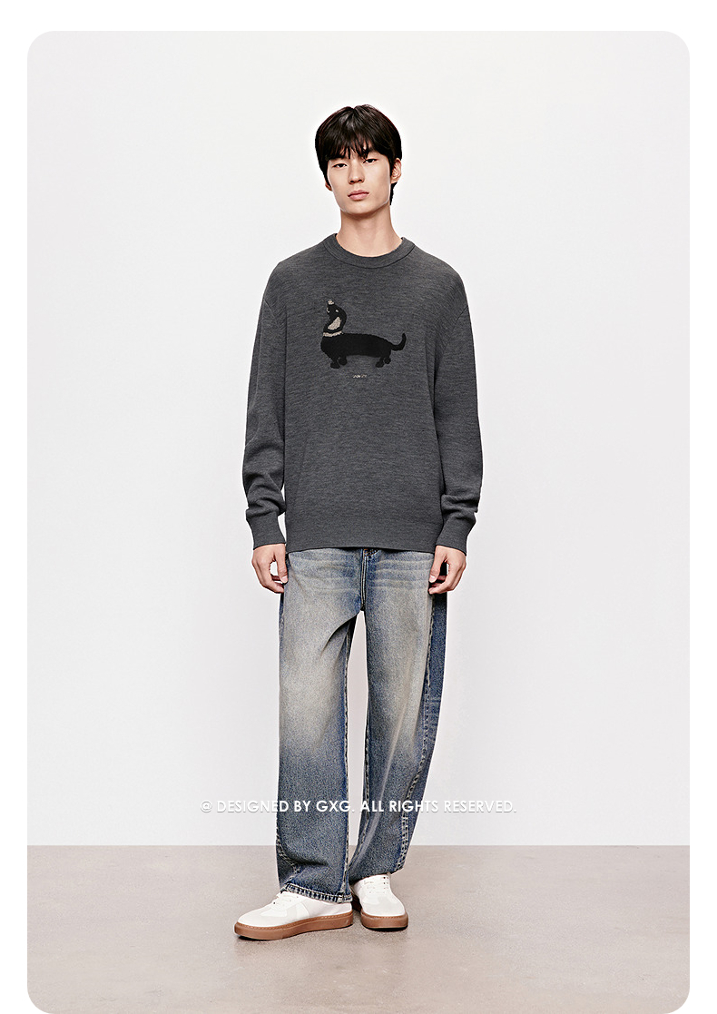 GXG男装 腊肠狗休闲毛衣图案可爱简约毛衫针织衫 2025年冬季热卖