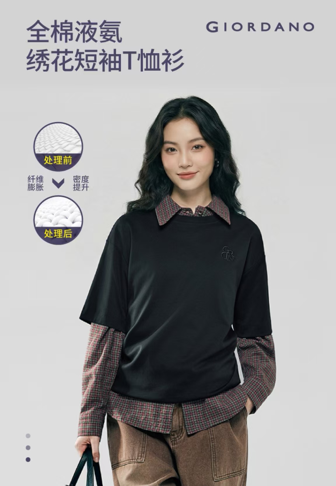 佐丹奴女装26年新款全棉液氨精致绣花短袖T恤衫05326219